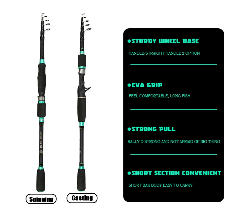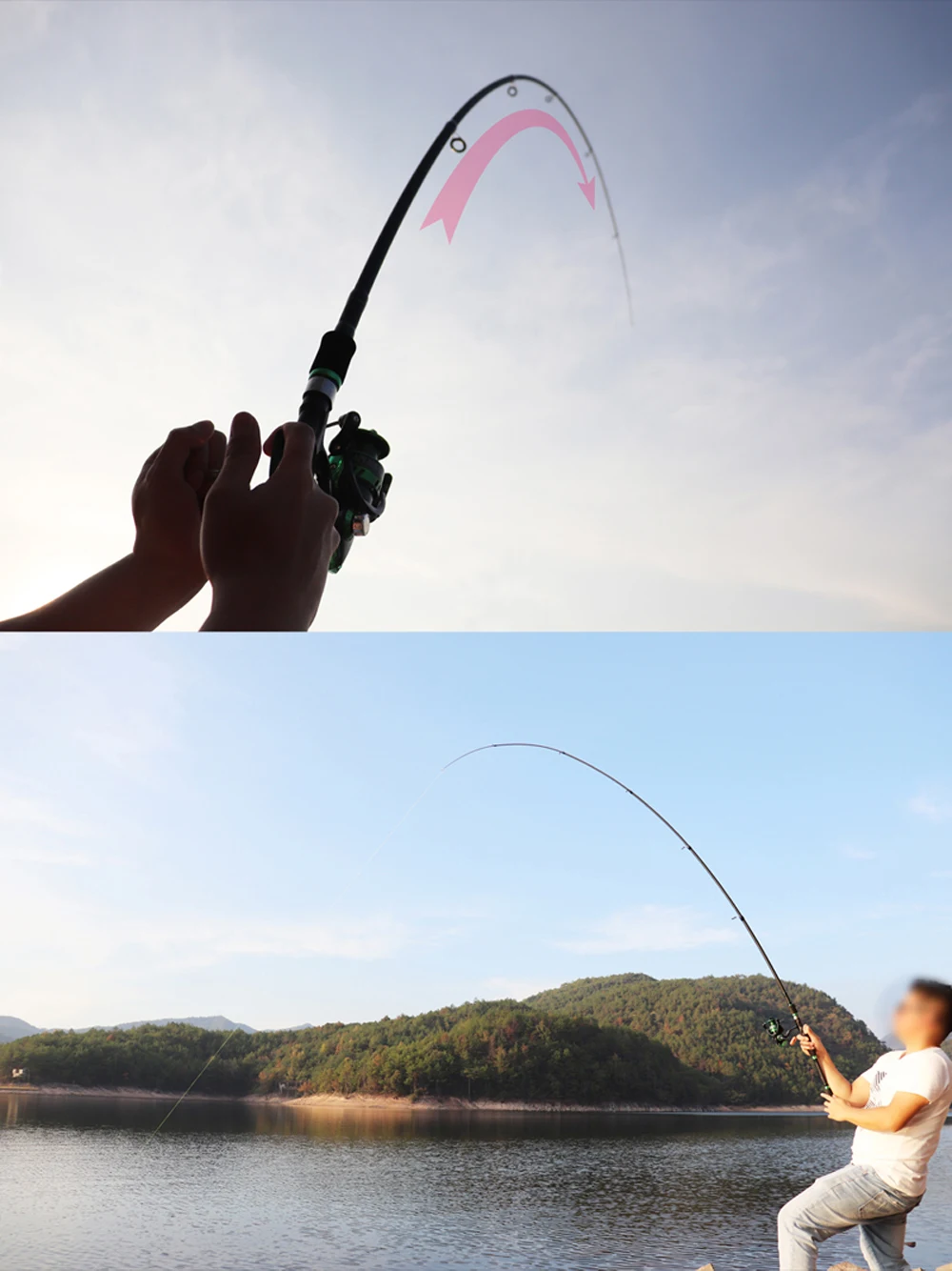 Особенности: 1. Материал из углеродного волокна, мощный, чувствительный, но светильник. 2 Высокопрочное и долговечное катушкодержатель, прочное и нескользящее. 3 высококачественных керамических направляющих кольца, минимизируют трение линии, эффективно рассеивают тепло, обеспечивают плавное отбрасывание при извлечении. 4. Защита окружающей среды и Нетоксичная крышка из АБС-пластика защищают направляющие от повреждений. 5 ручек из ЭВА высокой плотности, соответствует эргономичному дизайну, удобные и Нескользящие. 6 вы получите товар в индивидуальном пакете для удочек. Посылка тация: 1 шт. * удочка для приманки