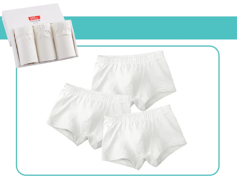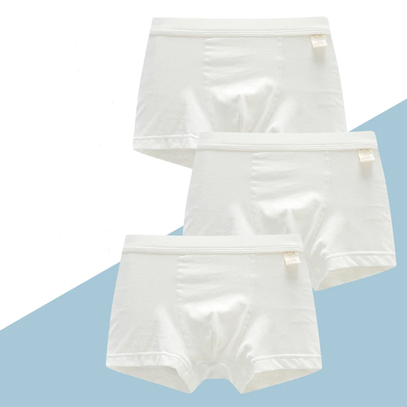 Трусы-боксеры для мальчиков 3 шт.лот, хлопковые, однотонные, белые