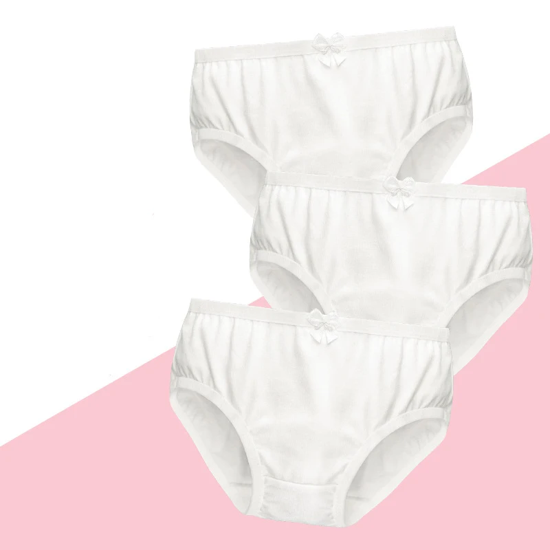 Хлопковые трусы для девочек, 3 шт.лот, однотонные, белые, мягкие
