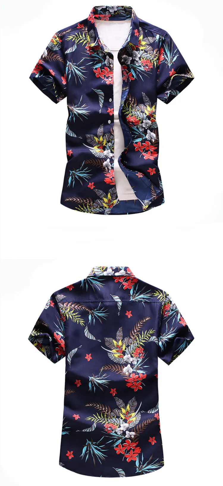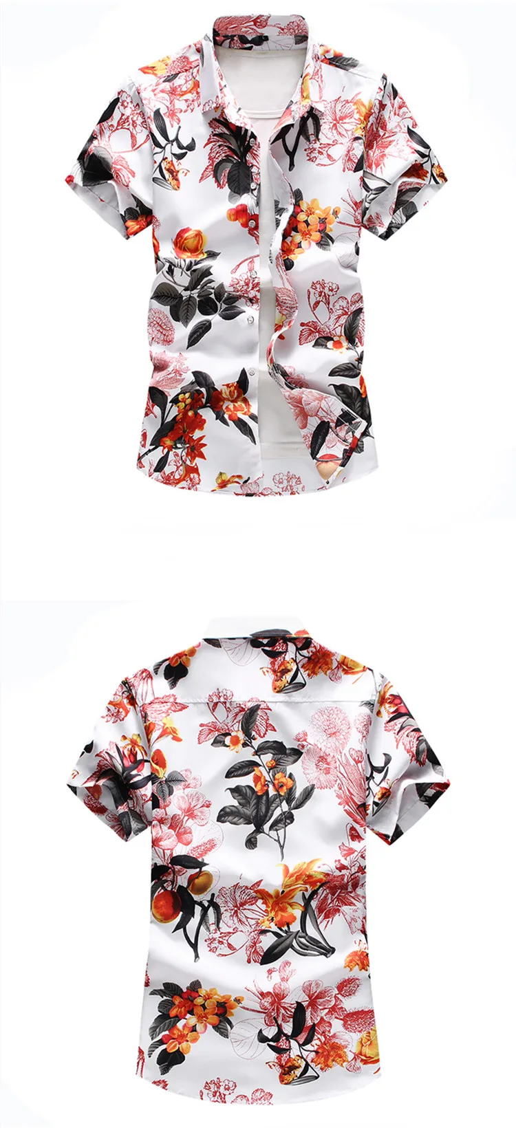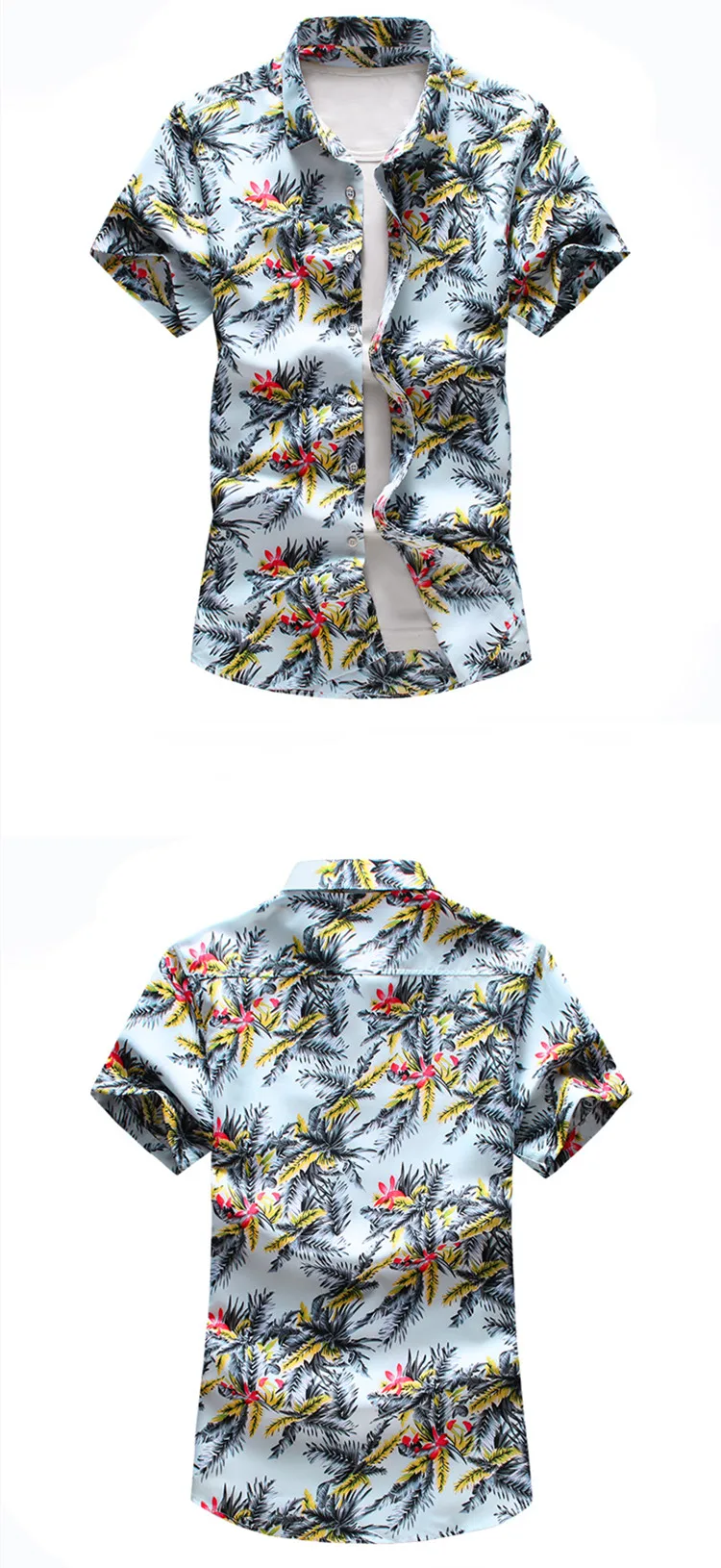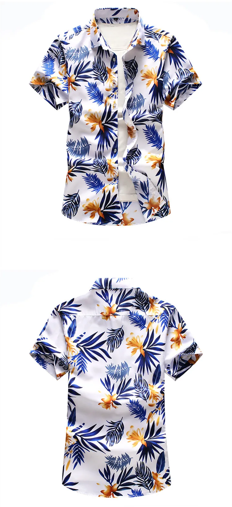 Рубашка мужская приталенная, Пляжная гавайская рубашка с короткими рукавами, разных цветов, 20 стилей, лето