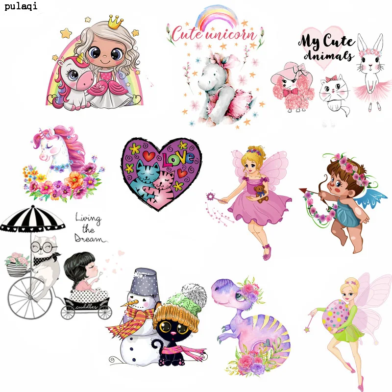 Pulaqi термо-Стикеры для одежды Горячая Передача для одежды в полоску теплопроводная поливинилхлоридная аппликация на одежду с рисунками зверей из мультфильмов нашивка единорога