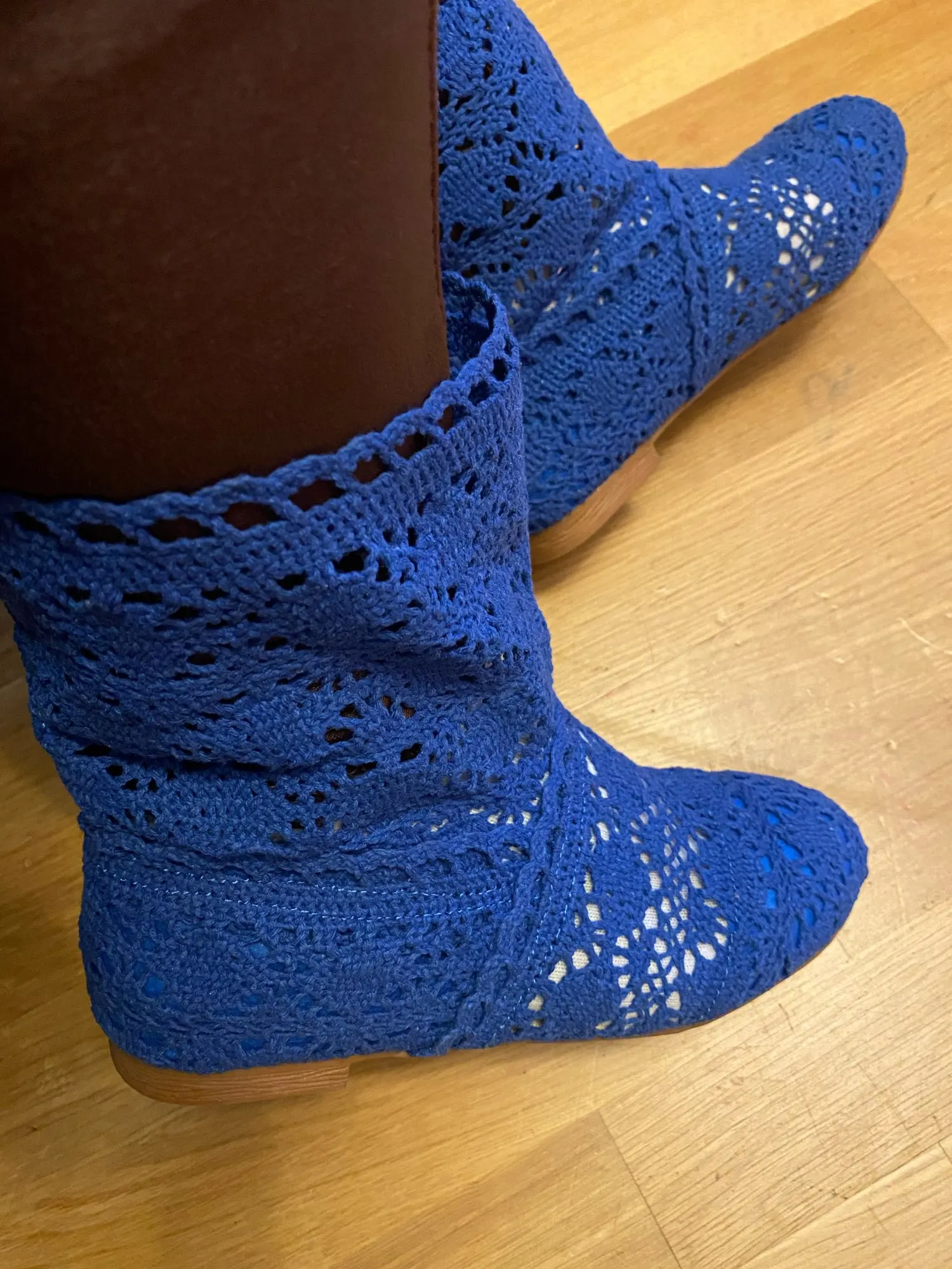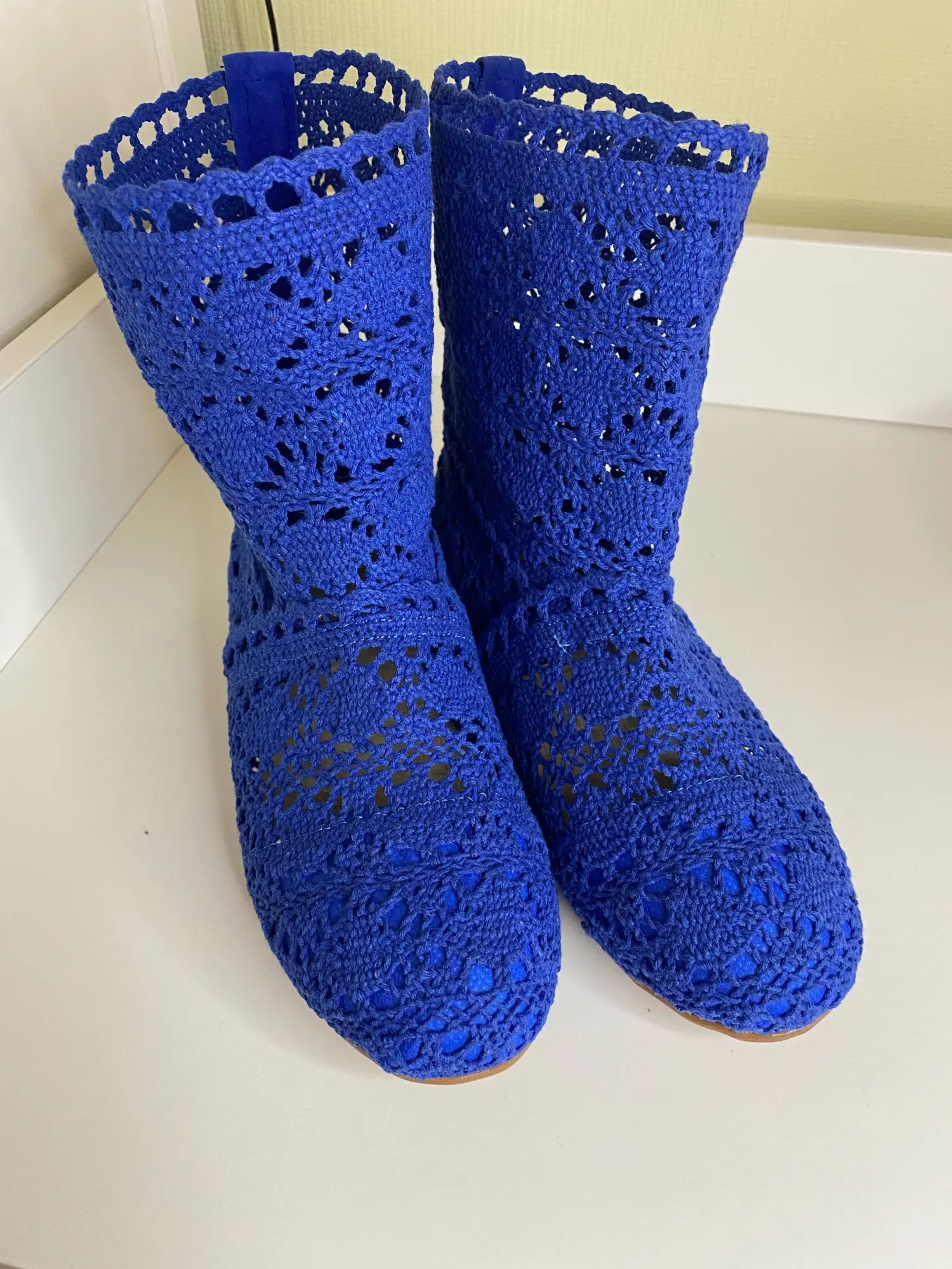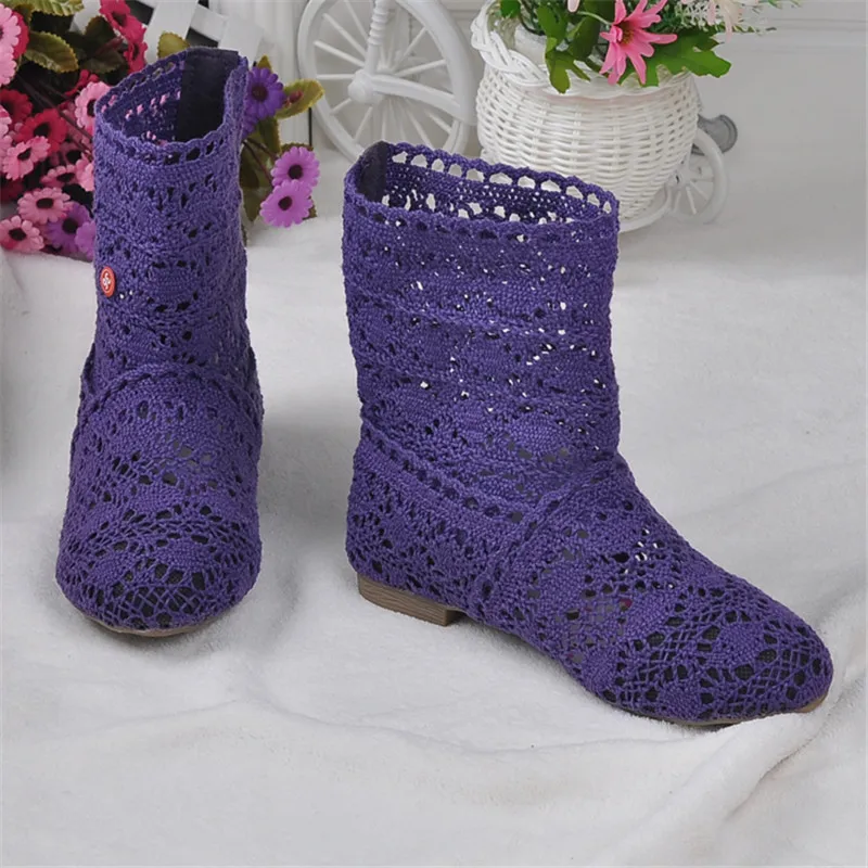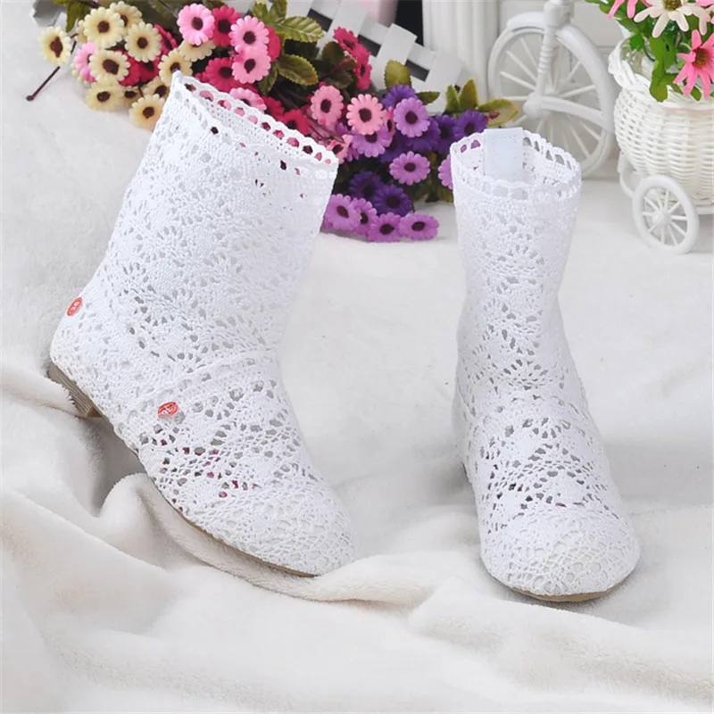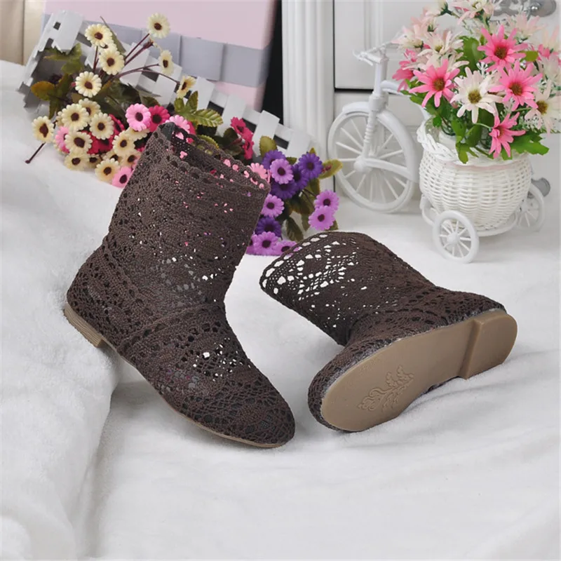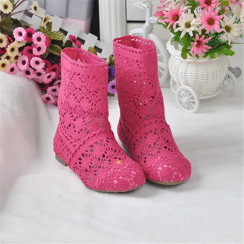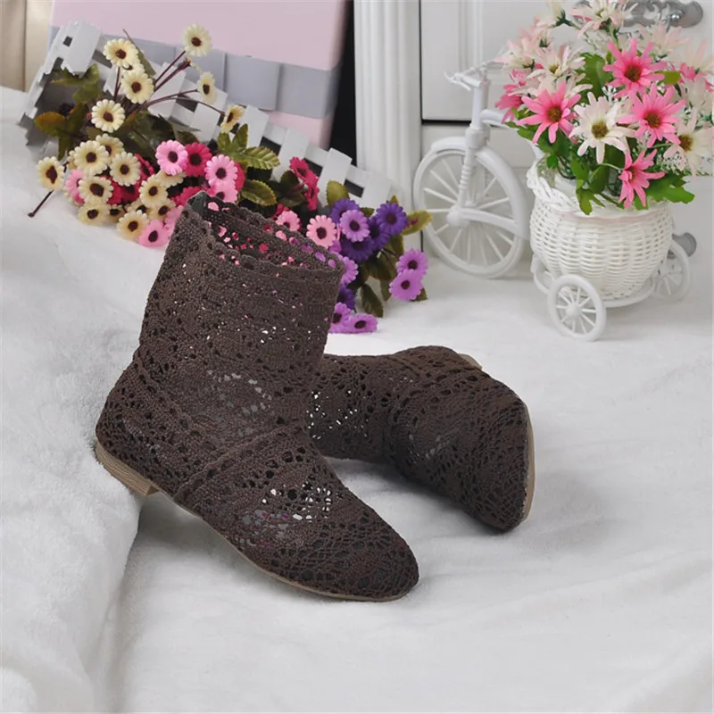 Весенне-осенние вязаные ажурные сапоги с плоской подошвой, сетчатые высокиенизкие Дышащие Модные кружевные сапоги, женская обувь