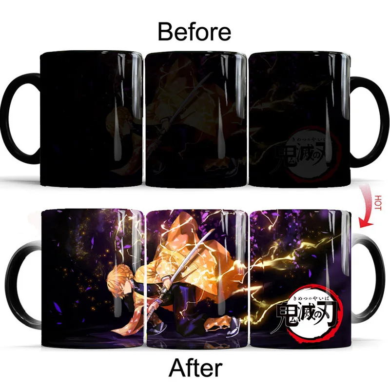 Кофейная кружка Demon Slayer, чувствительная к температуре, меняющая цвет, мультяшная кружка аниме, креативные керамические чашки для чая, молока, 2019