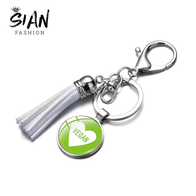 Новый модный веганский брелок вегетарианское зеленое сердце ручной ...