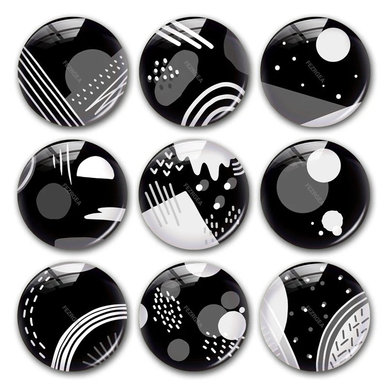 Стеклянный кабошон с геометрическим узором, черные, белые, серые цифровые изображения, круглые фото, кабошон, демонстрация, с плоской обратной стороной