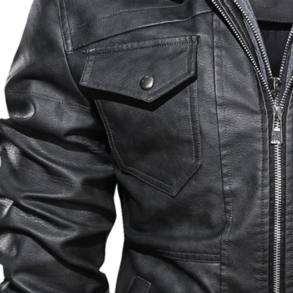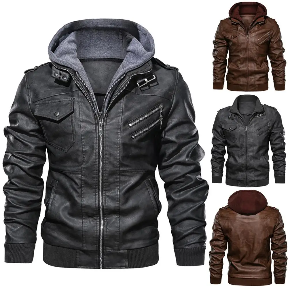 Мужское пальто из искусственной кожи, осенне-зимнее пальто с капюшоном и капюшоном, съемные облегающие кожаные мотоциклетные куртки, мужские пальто с капюшоном 10,10