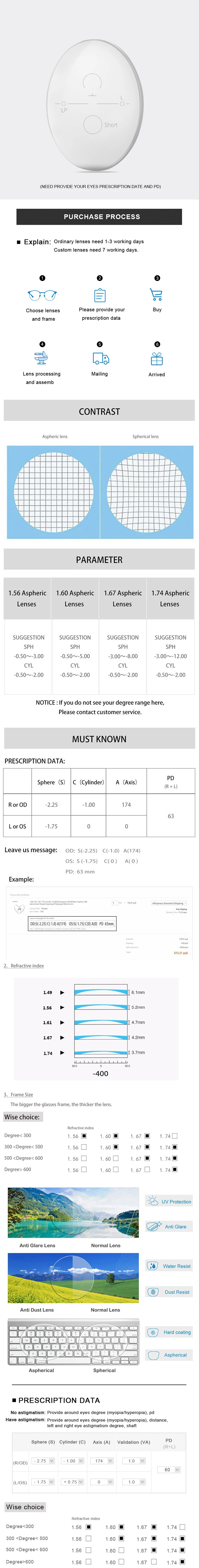 1,56 1,61 1,67 (добавить + 0,75 + 3,00) прогрессивные Мультифокальные линзы Оптический Рецепт близорукость Гиперметропия сопротивление короткое среднее расстояние