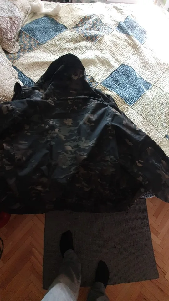 Кертка пришла быстро, ткань добротная, немного торчат нитки, но не критично. XXXL на размер 52-54 сел свободно, сожно пододеть свитер. Впереди два больших кармана на молнии, в области подмышек растегивается молния. Рукава на запястье фиксируются липучкой, капюшон плотно садиться, его можно свернуть и зафиксировать с помощью клапана с липучкой.