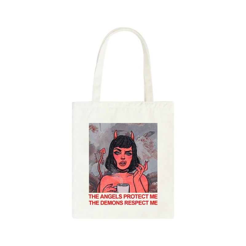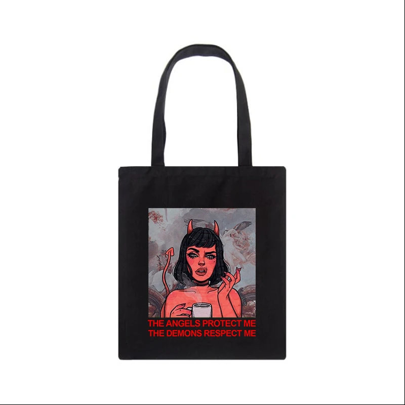 Холщовые повседневные свободные женские сумки на плечо в стиле Харадзюку, смешные винтажные вместительные готические сумочки с принтом дьявольских надписей в стиле панк и японских Ins