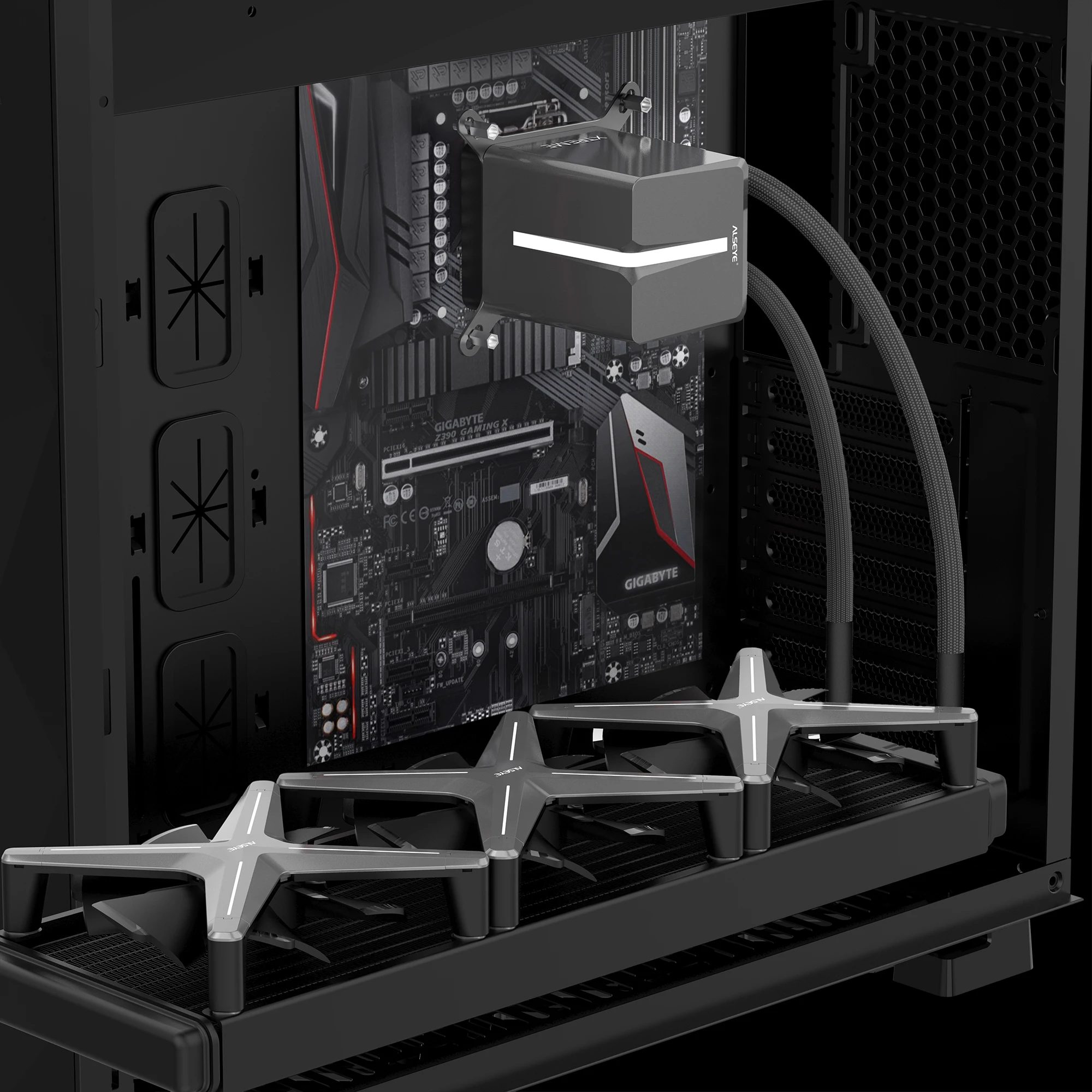 Чехол оснащен встроенным радиатор водяного охлаждения, который выглядит грандиозно, один вентилятор также может быть независимо установлен в чехол.