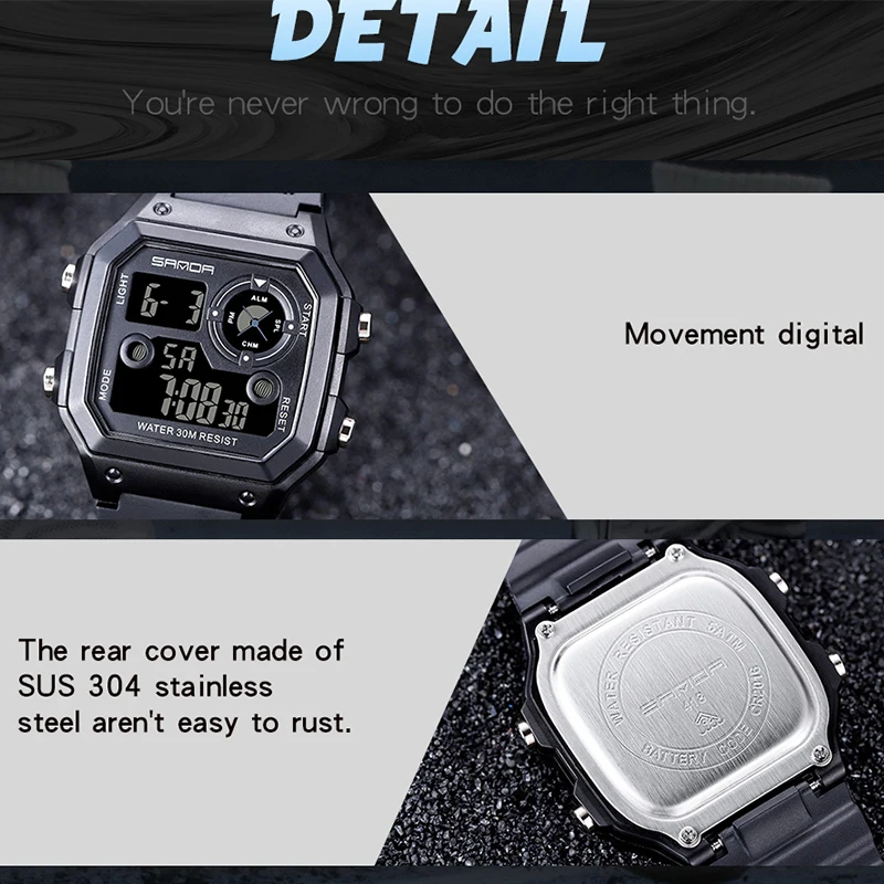SANDA военные цифровые мужские часы спортивные светодиодный дисплей Будильник водонепроницаемые часы электронные наручные часы Relogio Masculino