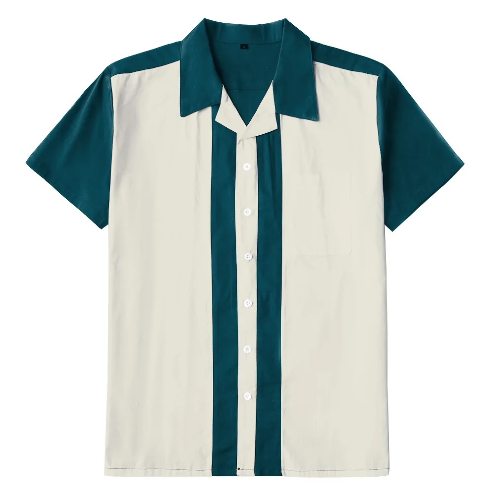 Мужская хлопковая рубашка, повседневная винтажная рубашка в стиле ретро, боулинг, с коротким рукавом, лето размера плюс