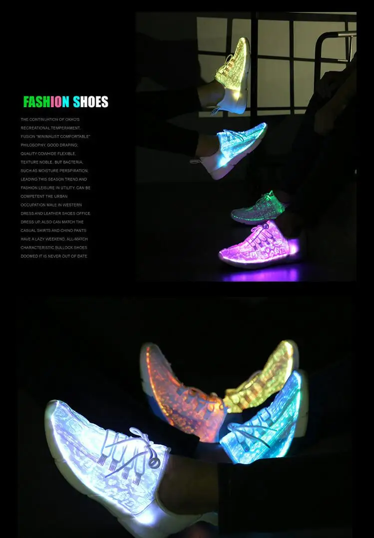 Кроссовки мужские из оптоволокна со светодиодной подсветкой, обувь для мальчиков и женщин, светящиеся сникерсы с зарядкой от USB, обувь с подсветкой, Размеры 25-46, лето