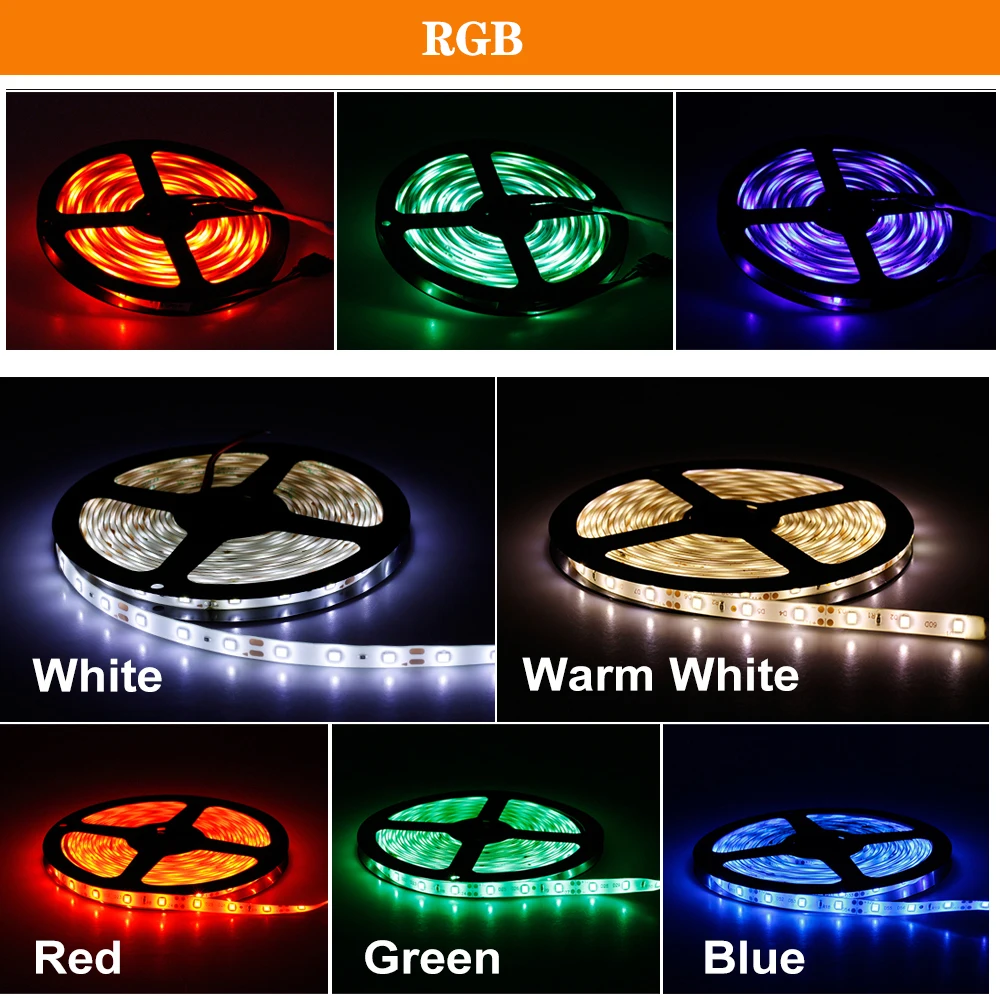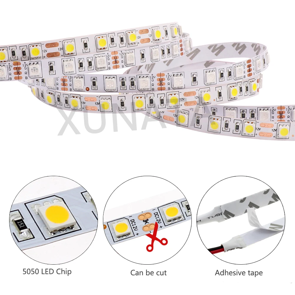 Светодиодная лента 5 м 12 В 5050 гибкая светодиодная лента e 60 светодиодовM RGBбелыйтеплый белыйсинийзеленыйкрасный Светодиодная лента водонепроницаемая лента Диодная