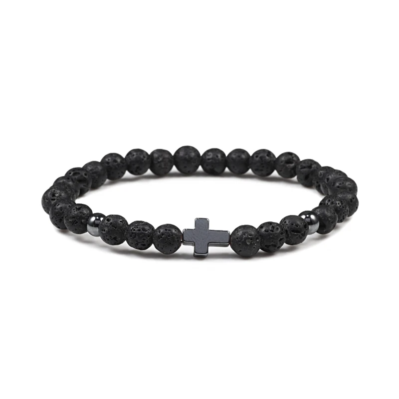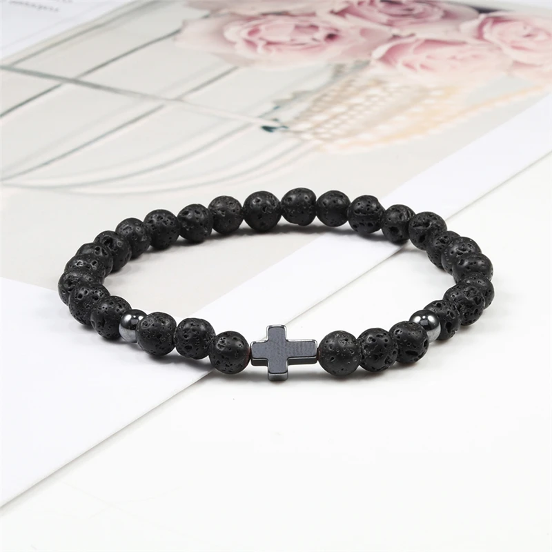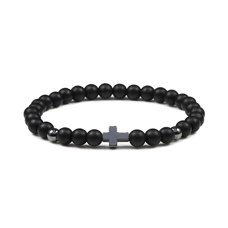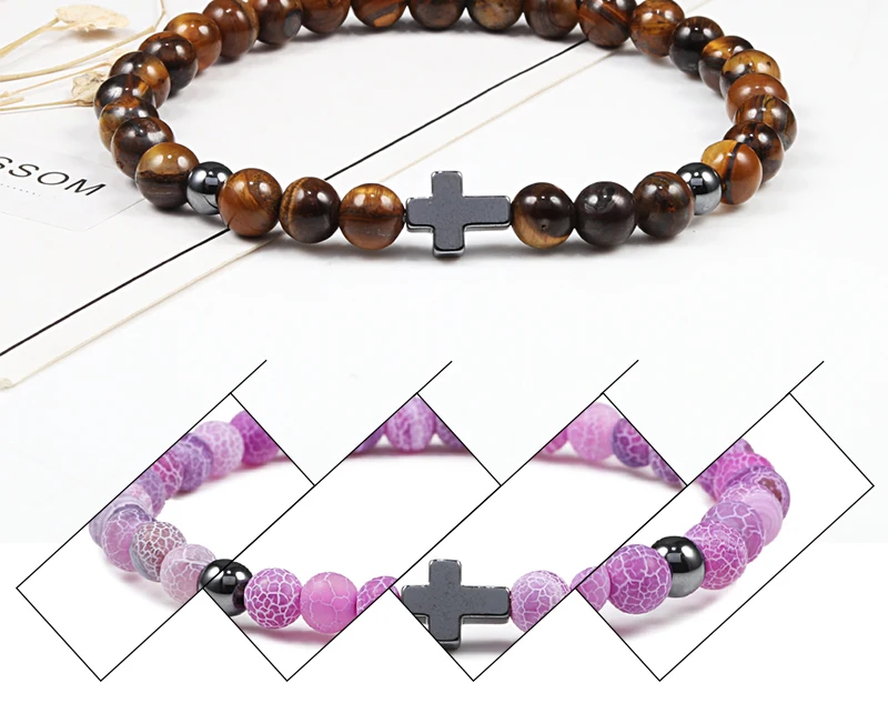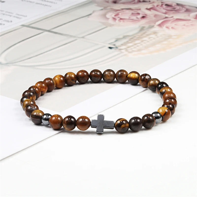 Браслет для молитвы для мужчин и женщин, из гематитового Креста, 6 мм натуральный камень, тигровый глаз, плетеные браслеты, браслет с Иисусом, йогой, Подарочная бижутерия
