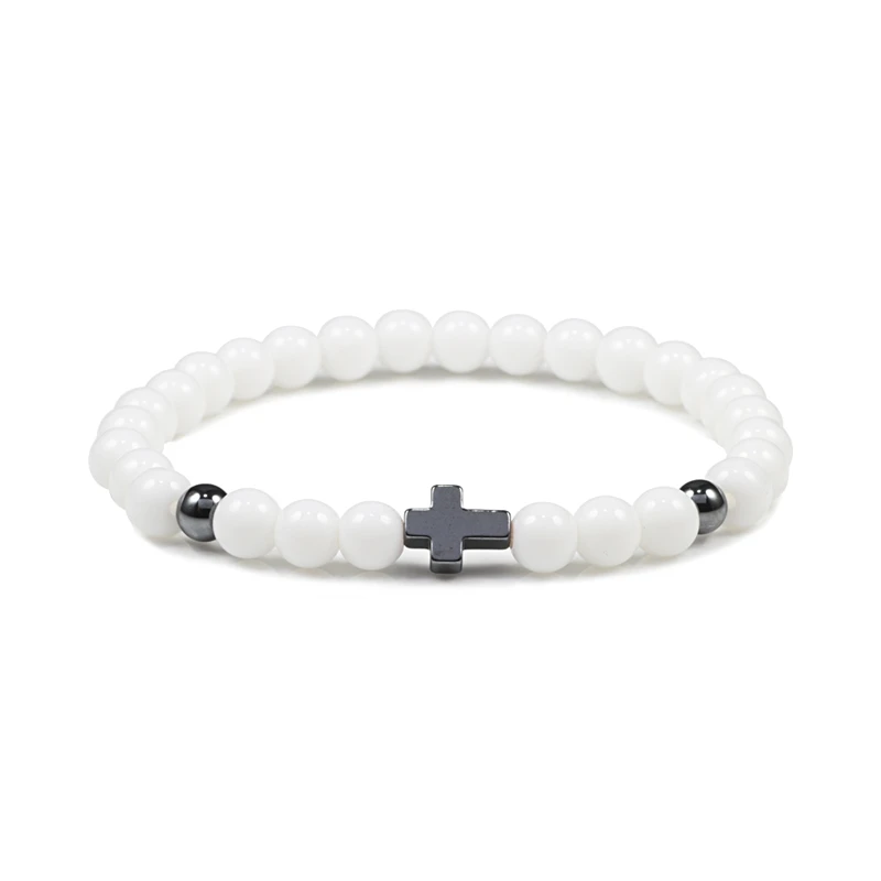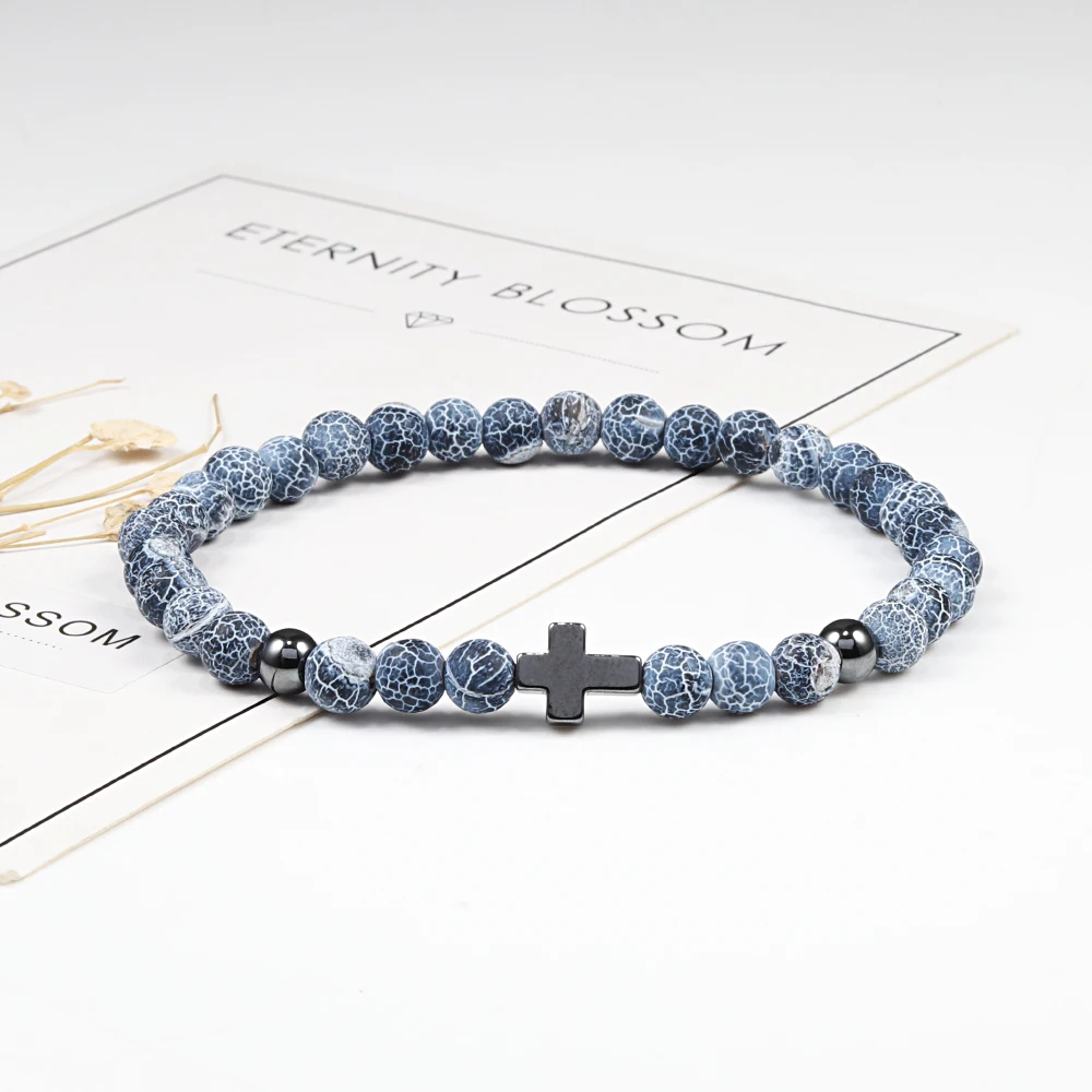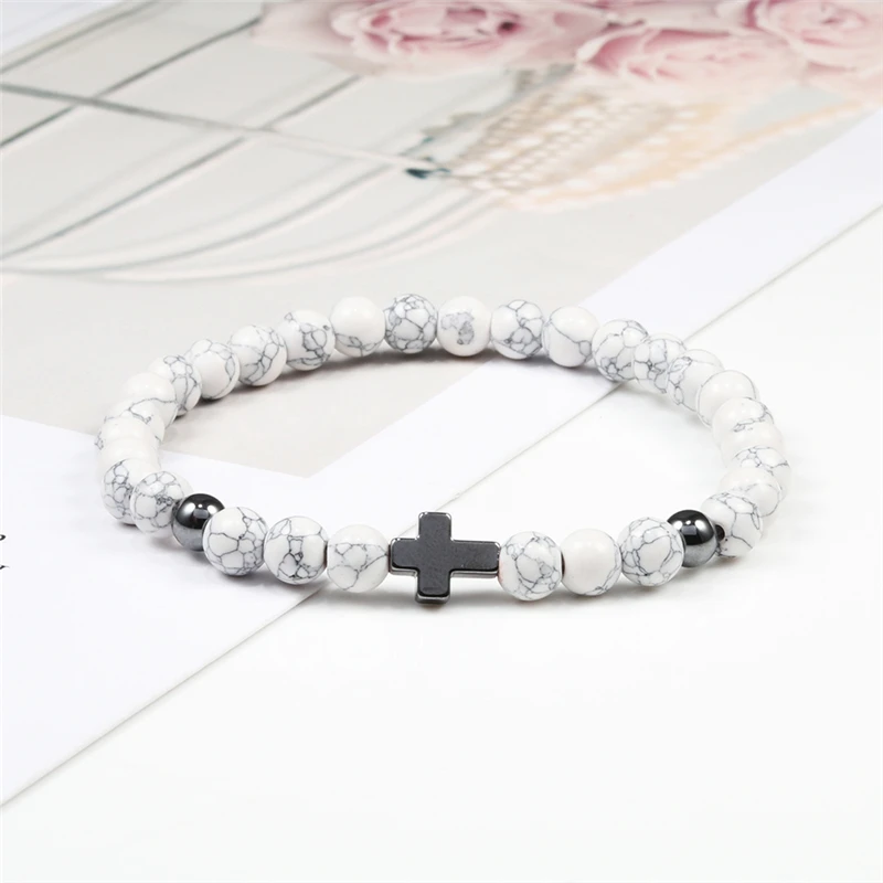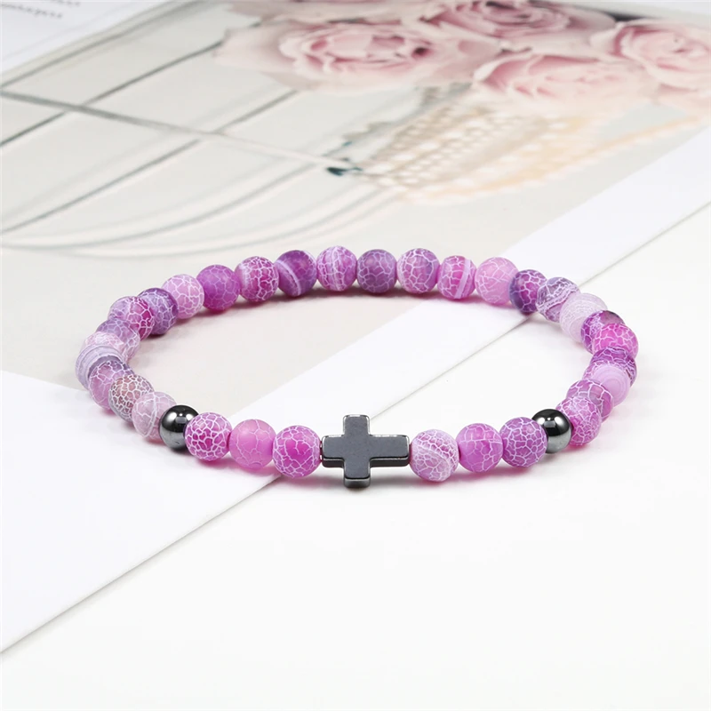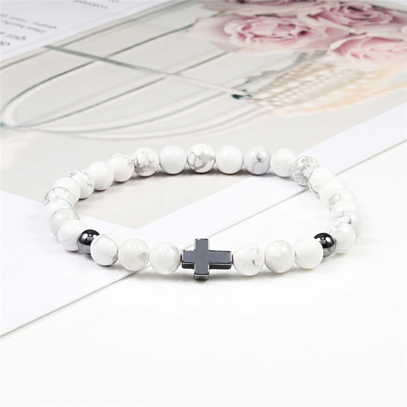 Браслет для молитвы для мужчин и женщин, из гематитового Креста, 6 мм натуральный камень, тигровый глаз, плетеные браслеты, браслет с Иисусом, йогой, Подарочная бижутерия