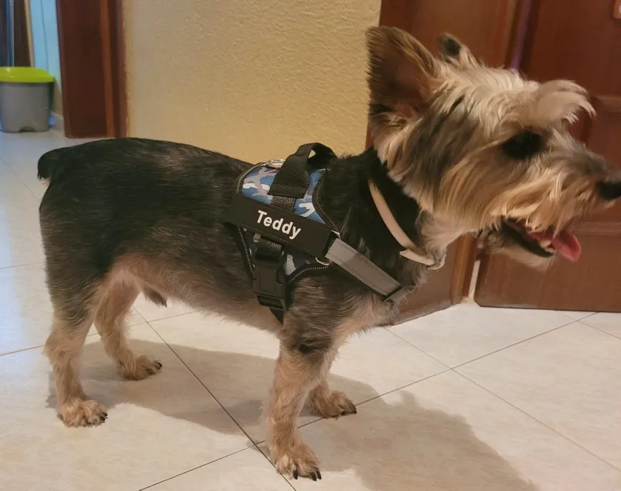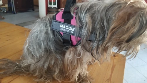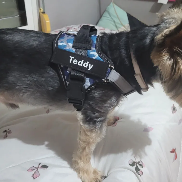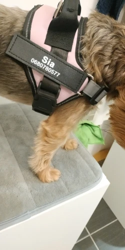 Excellent pour ma chienne de 6kg, le harnai est très facile a poser (presque aussi simple qu'un collier) il ne gêne pas le mouvement des pattes. je n'utilise pas de laisse donc je ne sais pas si le harnais gênerait la respiration d' un chien tirerait sur la laisse. le nom de ma chienne a été imprimé sur le velcro , la velcro détachable et plus grand que la surface de pose c'est un peu dommage mais pour ce prix, je ne vais pas m'en plaindre. ⭐⭐⭐⭐⭐