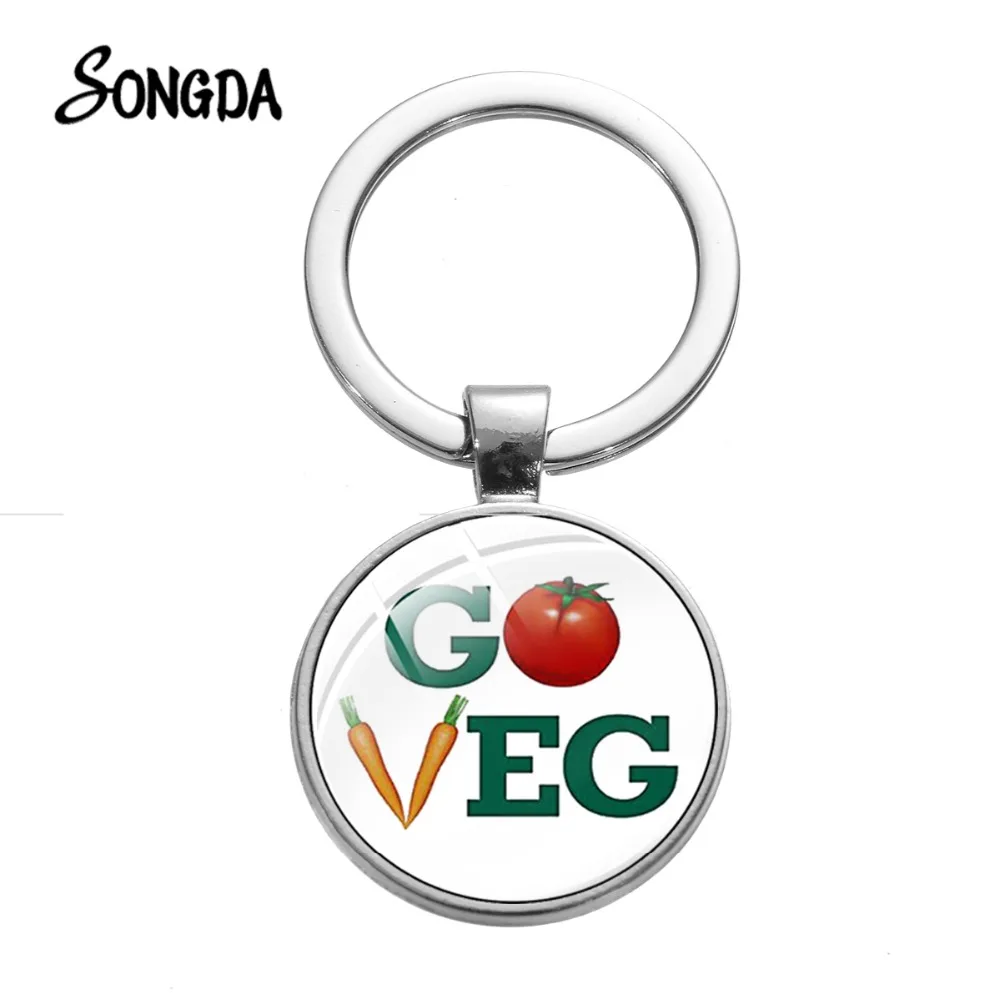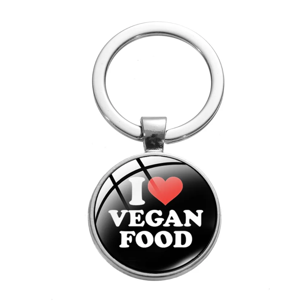 Брелок для ключей в стиле минимализма с символом вегана, мультяшный креативный узор, хрустальный кулон, из сплава, для вегетарианских подарков