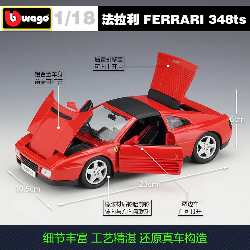 Модель автомобиля Bburago Ferrari 348ts 1:18 из сплава, коллекционная игрушка в подарок