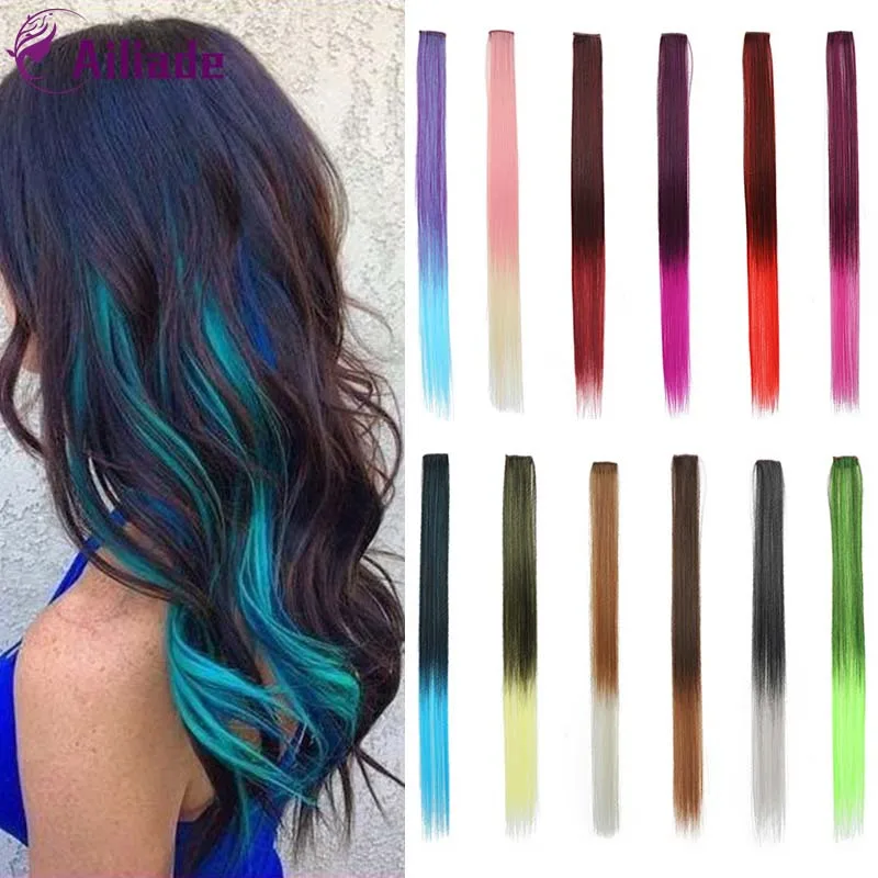 Накладные волосы AILIADE на клипсах, 24 дюйма, однотонные, прямые, Длинные Синтетические волосы, накладные волосы на клипсах, 2 цвета