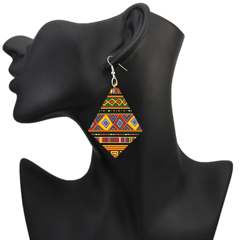 SOMESOOR DIY роспись большие индивидуальные геометрические африканские деревянные висячие серьги треугольник деревянный кулон Висячие ювелирные изделия для женщин Подарки