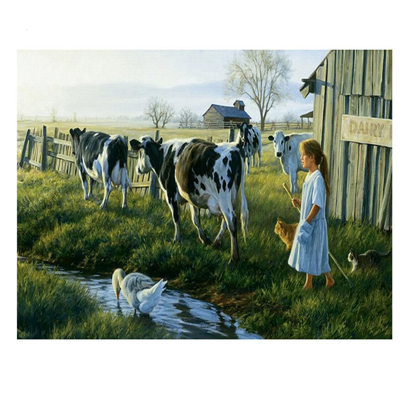 5D Diy алмазная живопись "животных на коровью ферму" 3D Алмазная мозаика камни в форме ромбакруглый Рождественская Алмазная вышивка украшение дома TY856