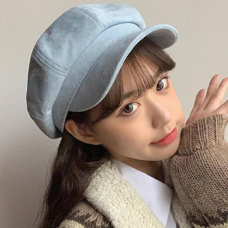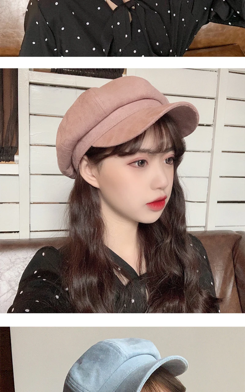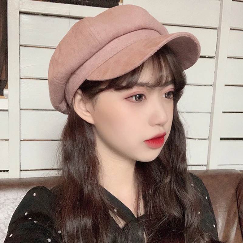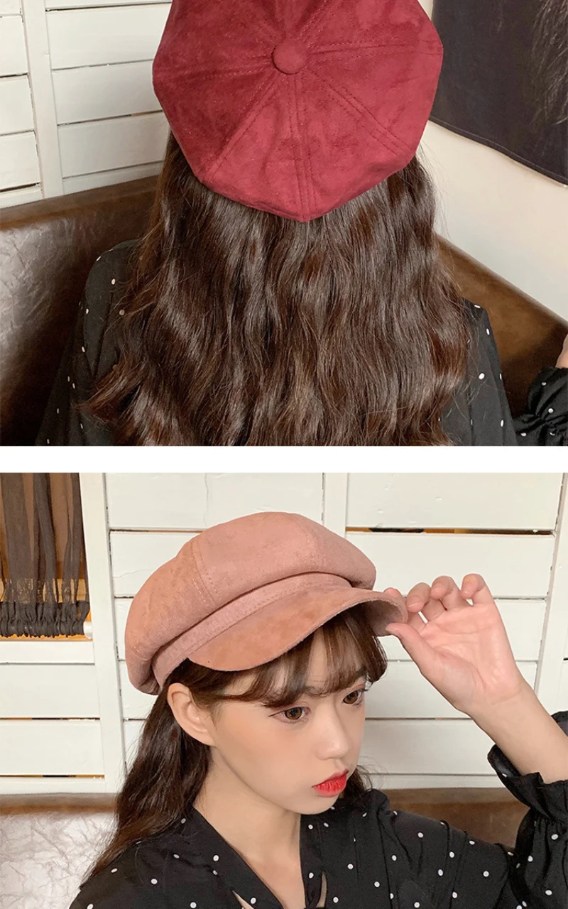 Женский ретро-берет HT2892, восьмиугольная кепка газетчика, однотонный, простая замша