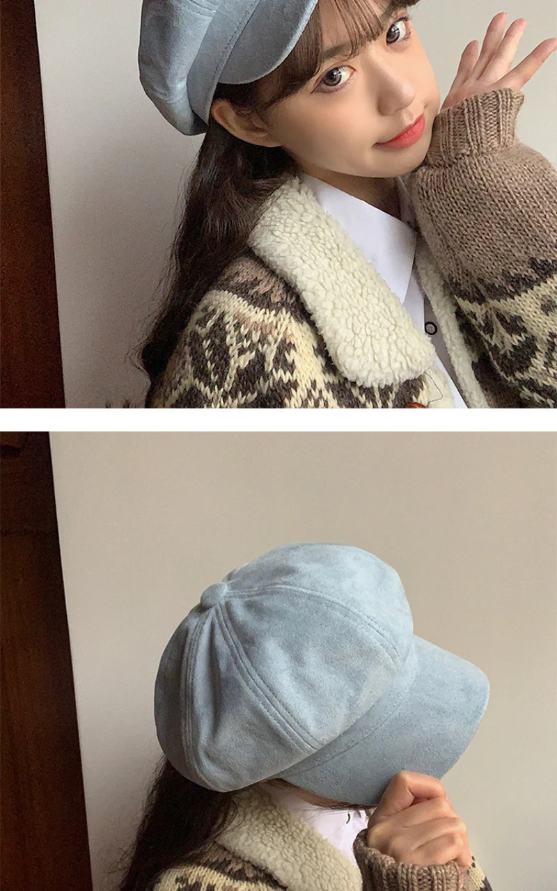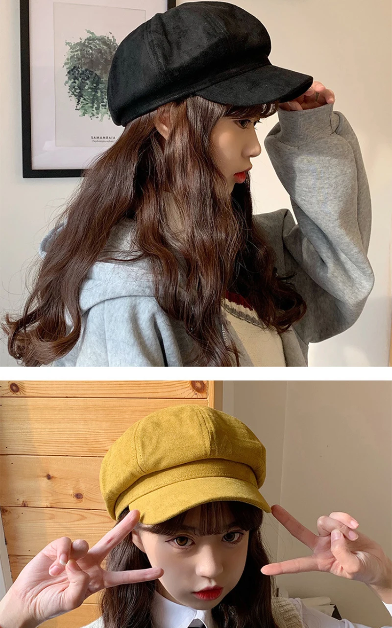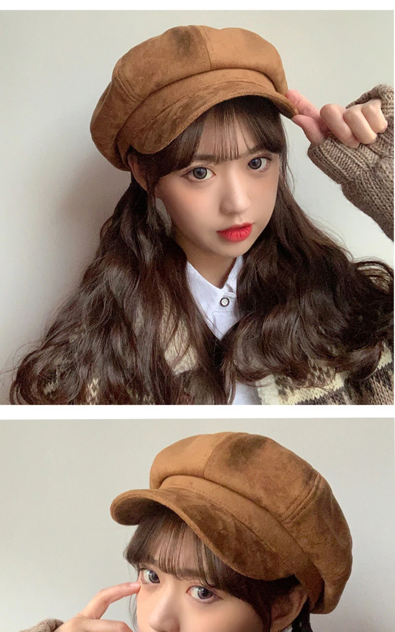 Женский ретро-берет HT2892, восьмиугольная кепка газетчика, однотонный, простая замша