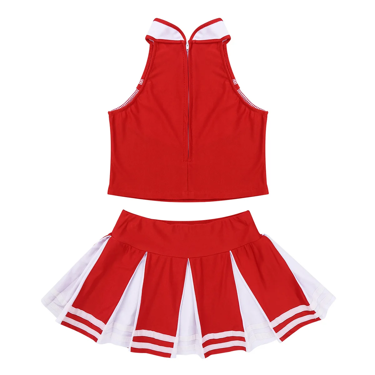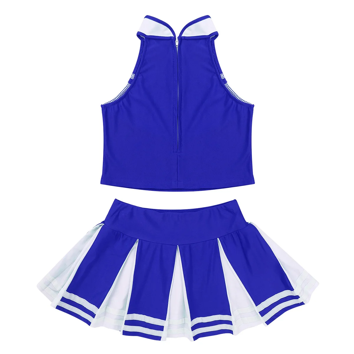 Детский костюм для девочек, костюм для чарлидинга, Одежда для танцев, топы на молнии с плиссированной мини-юбкой для чарлидинга, детская одежда для чарлидинга