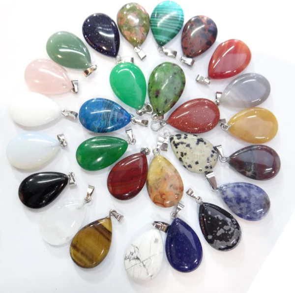 Натуральный камень кварц кристалл тигровый глаз, Ляпис, бирюза, опаловое стекло, кабошон в виде капли Подвески для изготовления ювелирных изделий, аксессуары для ожерелья, 12 шт.