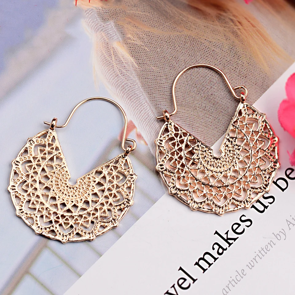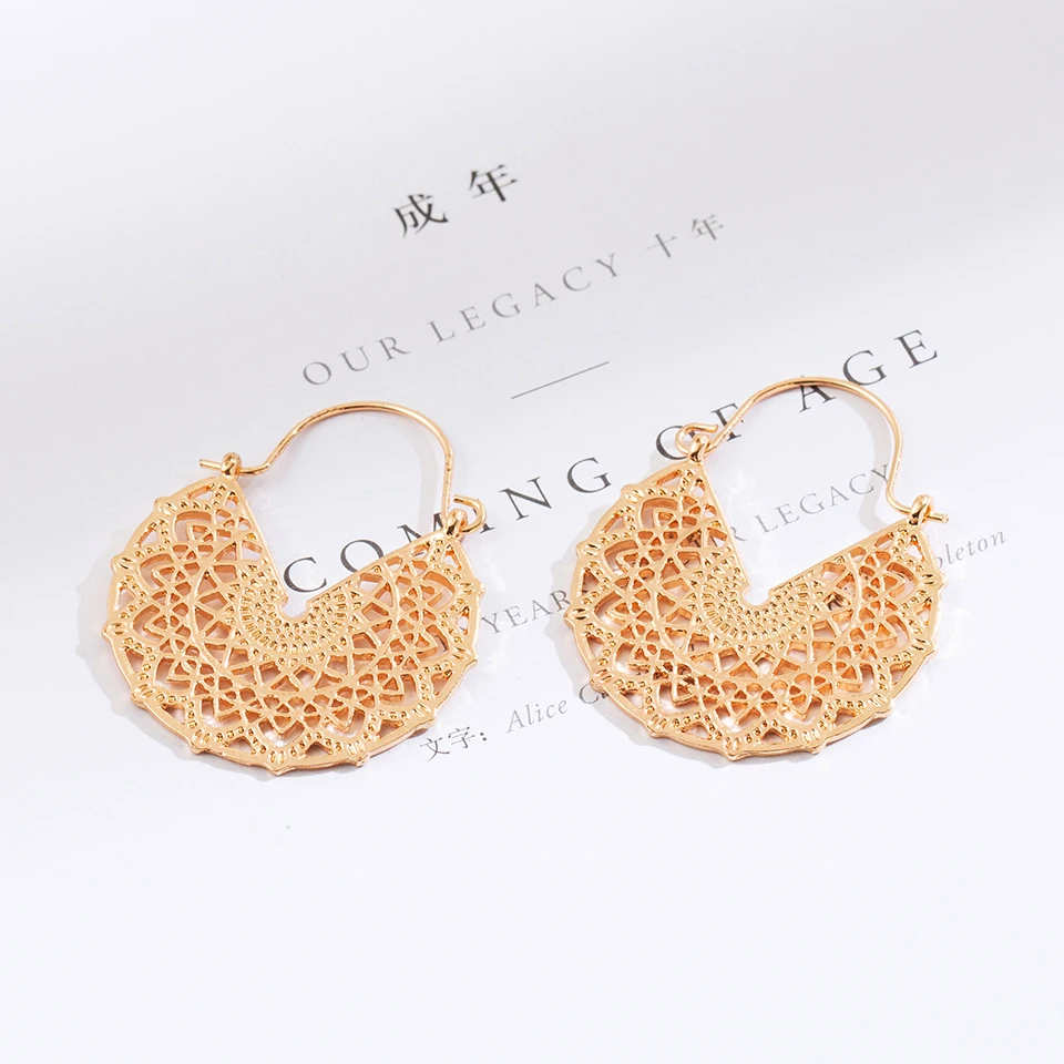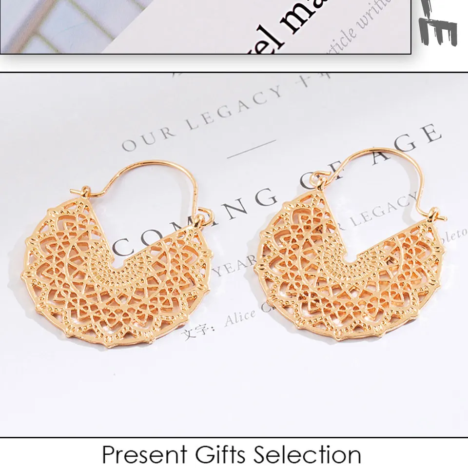 Очаровательные винтажные этнические полые подвесные Золотые Большие висячие серьги для женщин женские украшения для ушей Свадебные украшения Аксессуары