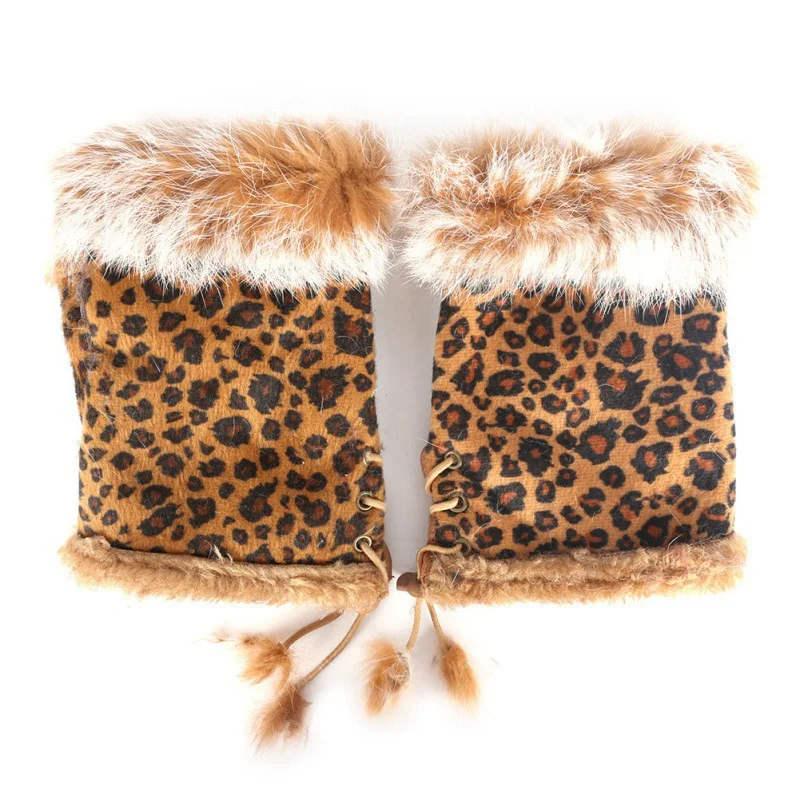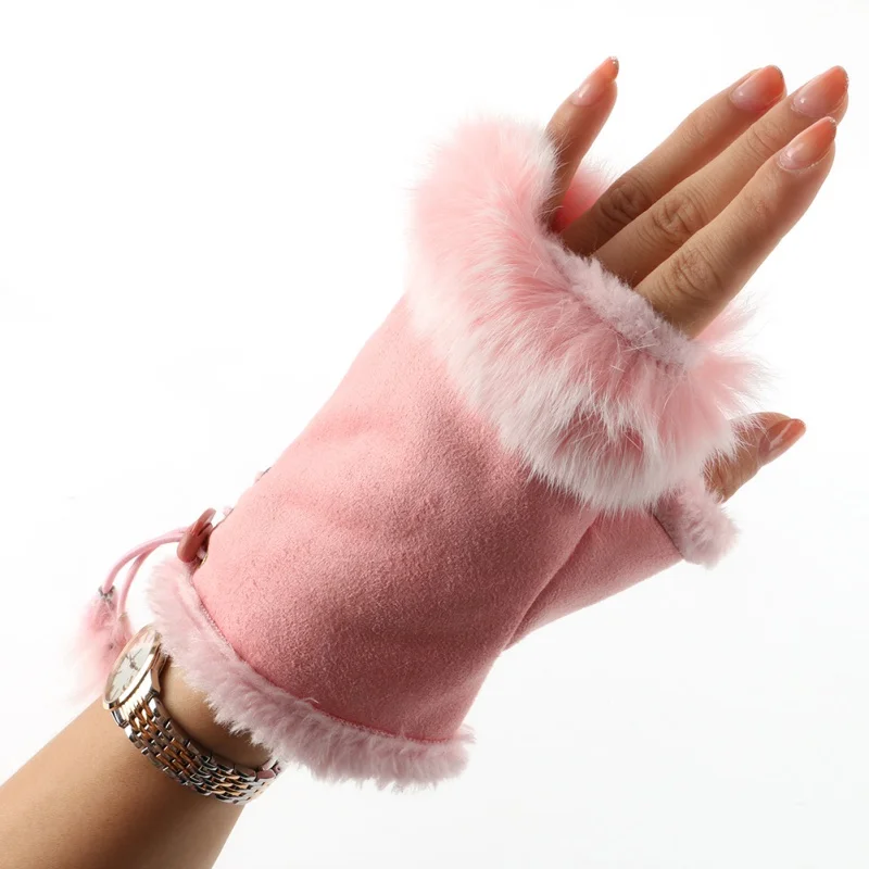 Кожаные женские варежки без пальцев из кроличьего меха, женские зимние теплые замшевые перчатки на запястье