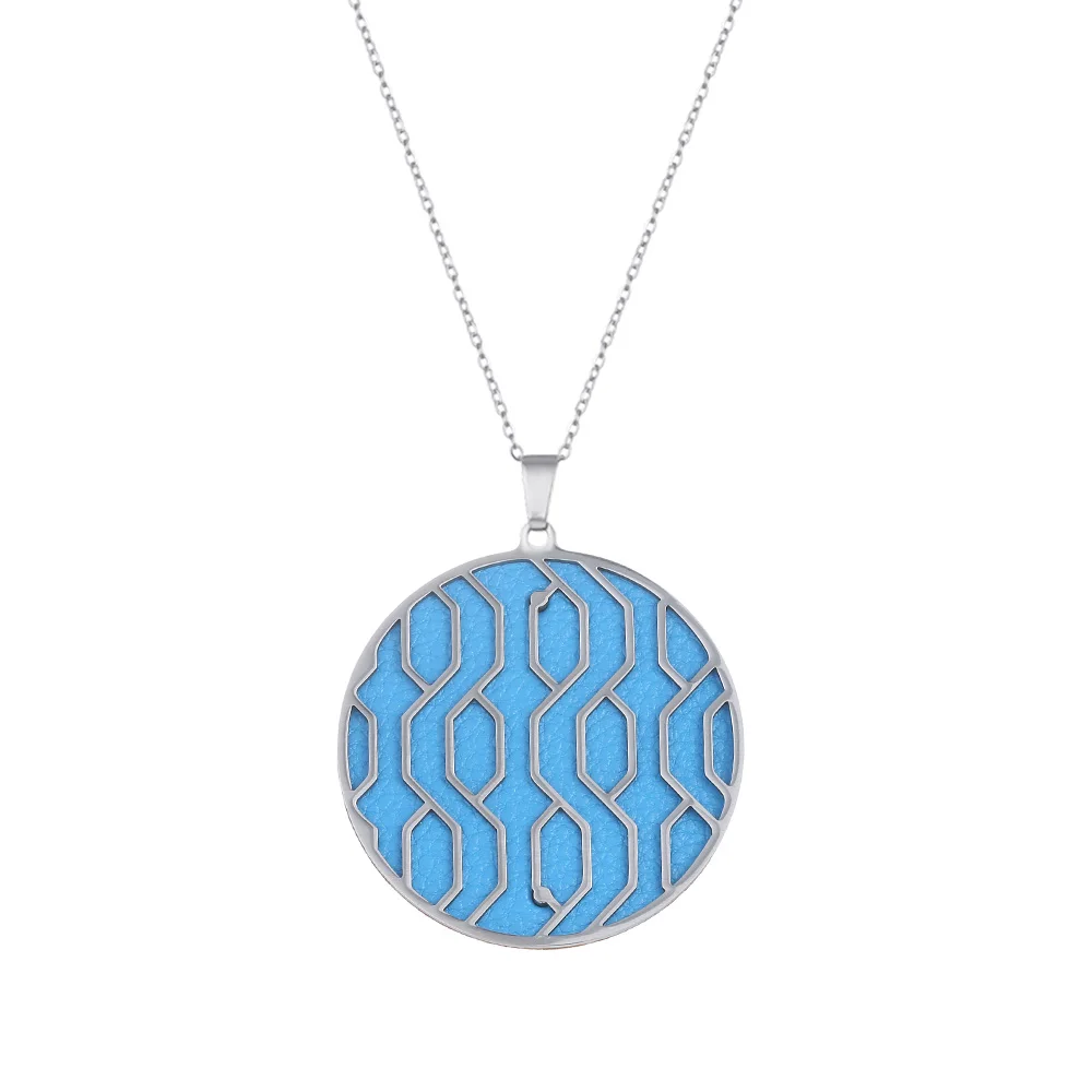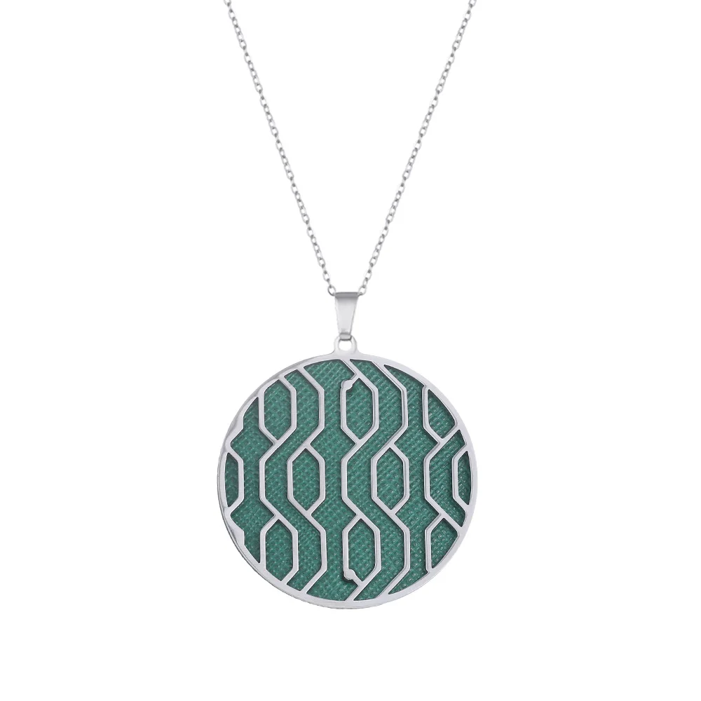 Ожерелье с кожаной круглой подвеской, из нержавеющей стали