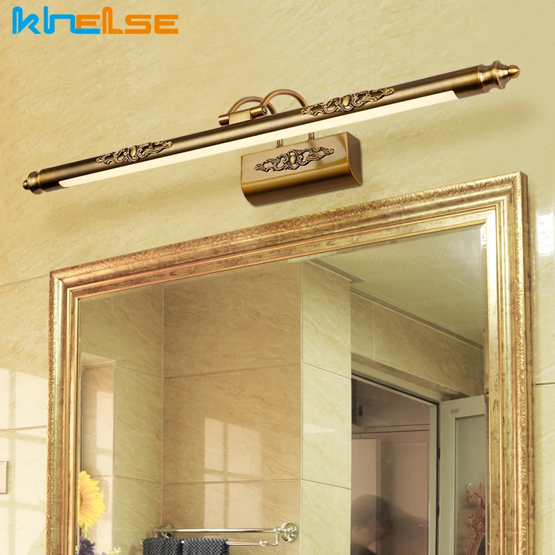 Косметическая светодиодная зеркальная лампа в стиле ретро, европейский светильник для макияжа, настенные лампы для ванной, бронзовое бра для шкафа, декоративное освещение, 500 мм, 8 Вт