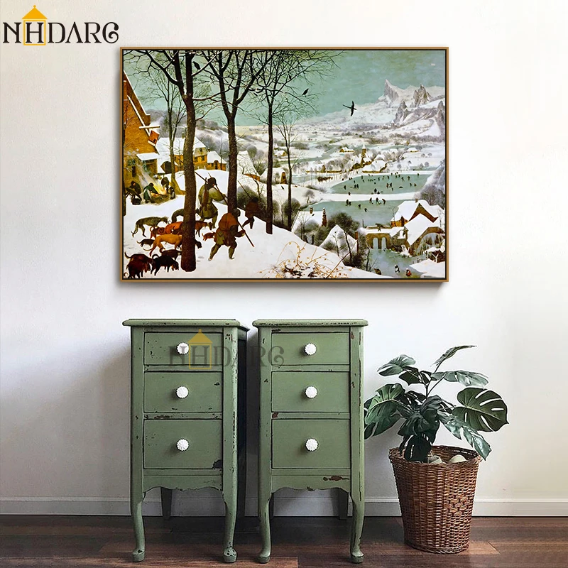 Пьер Брюгель Старший классический охотники в снегу (зима) Печать на холсте картина плакат NHDARC картины, плакаты на стену домашний декор
