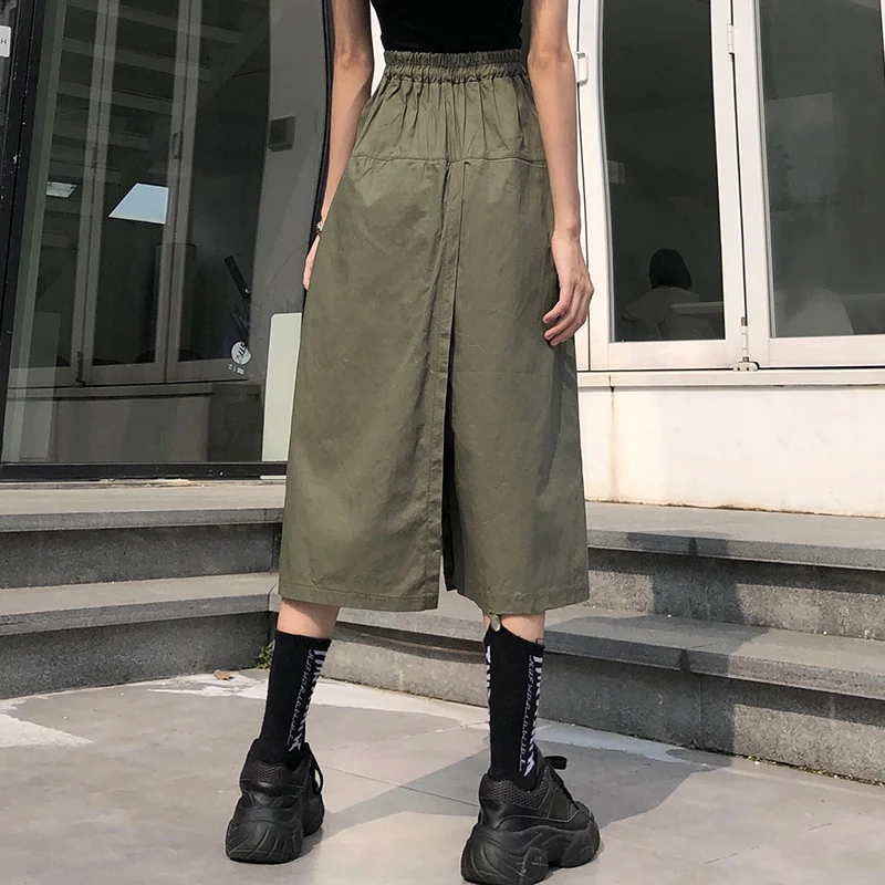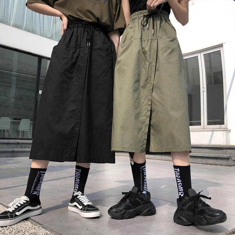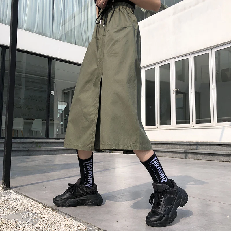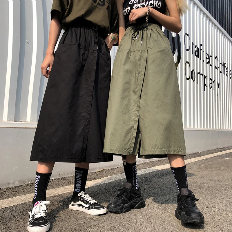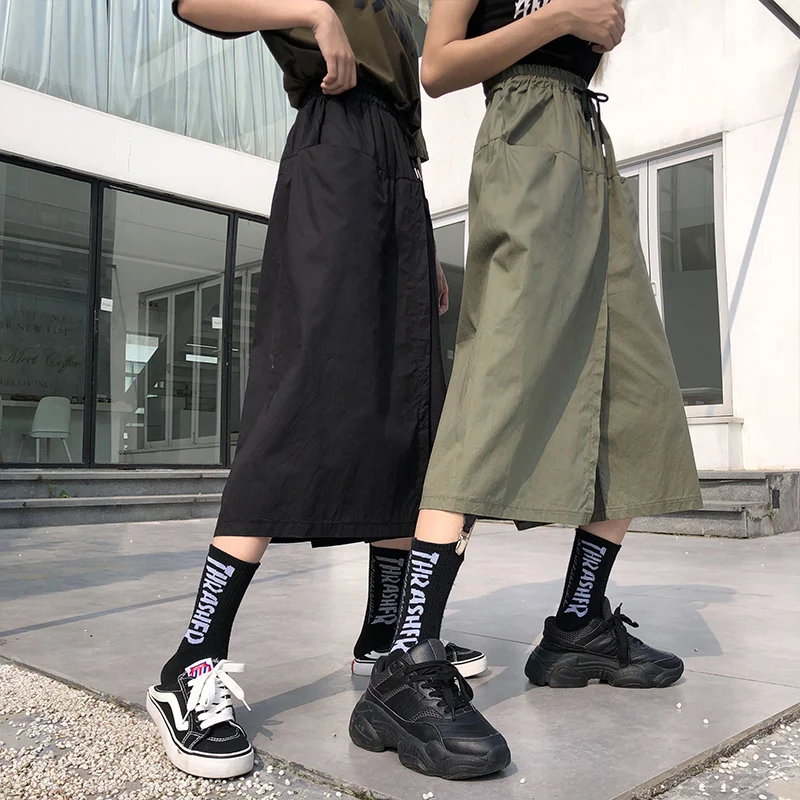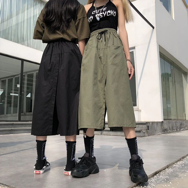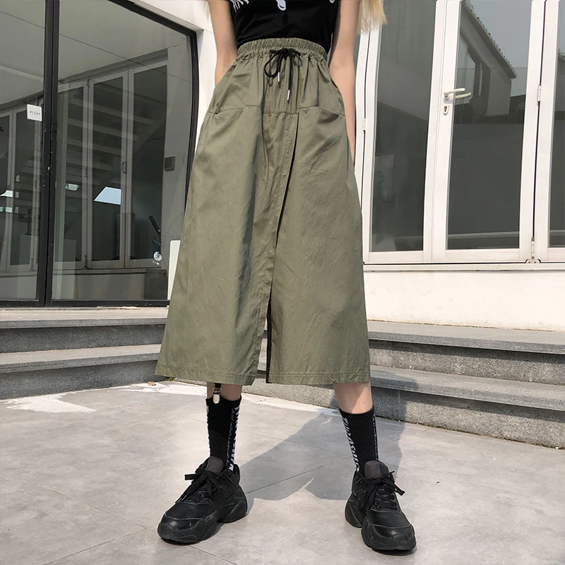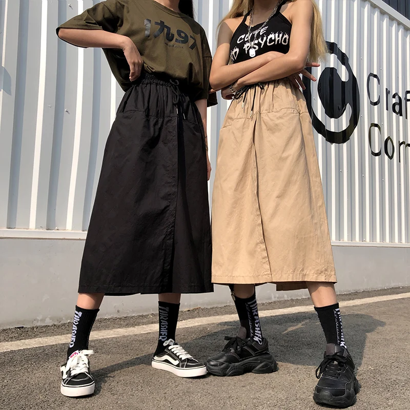 Свободная длинная юбка с высокой талией, женские шорты на лето и осень, Корейская юбка Ulzzang, женские шорты на весну, размера плюс