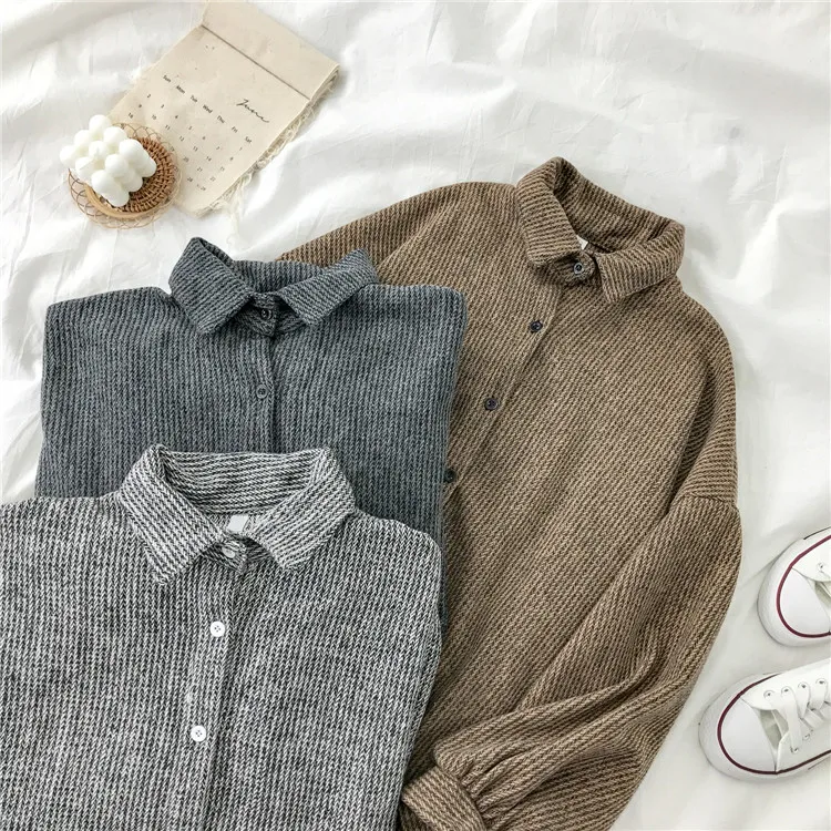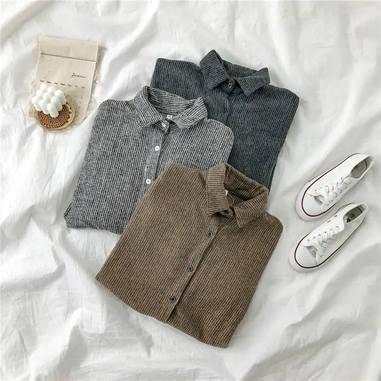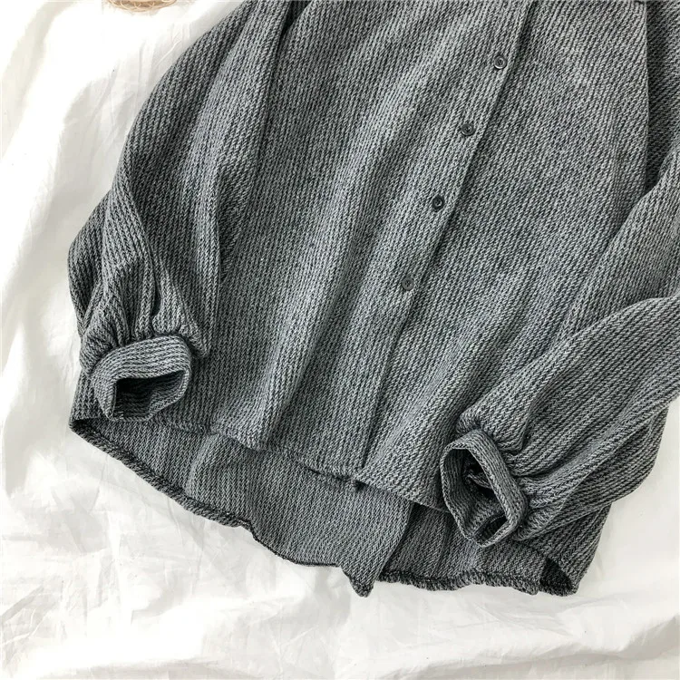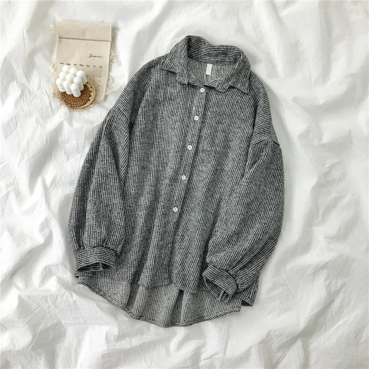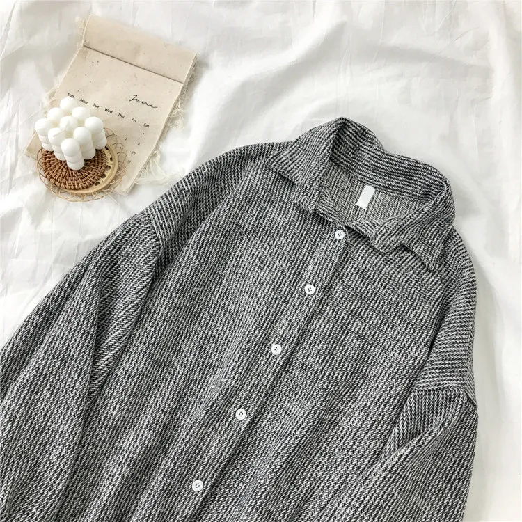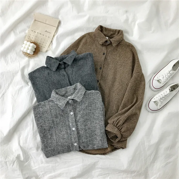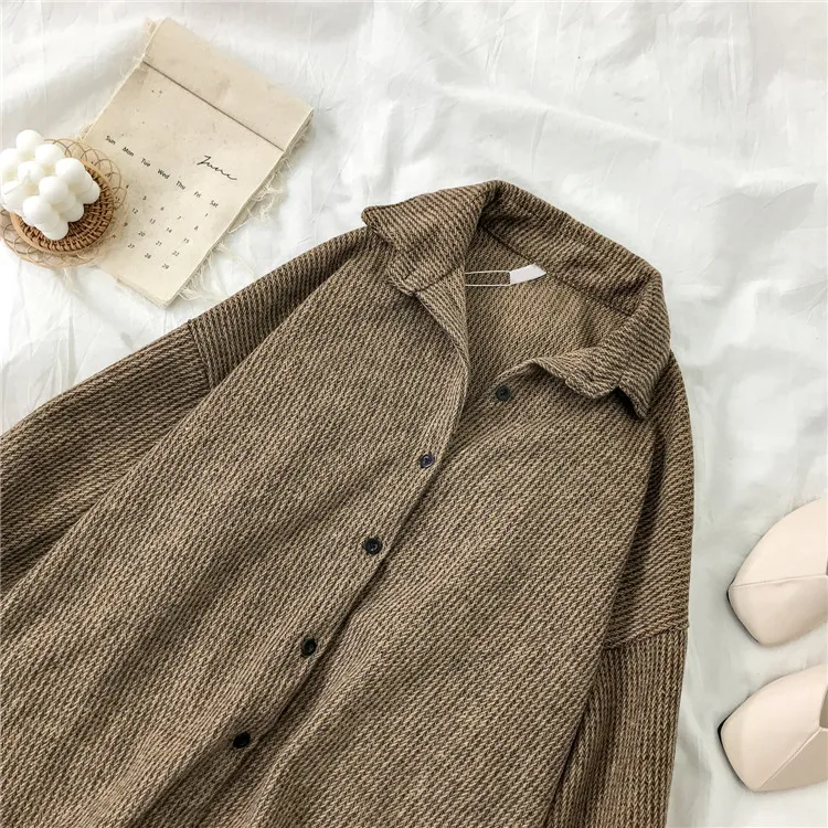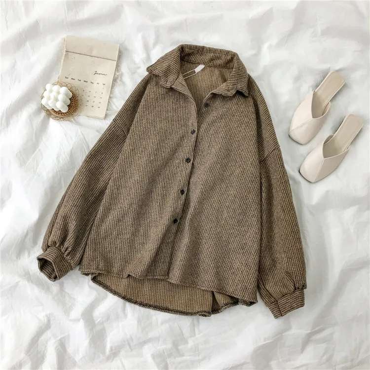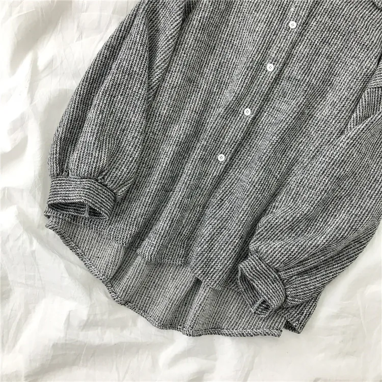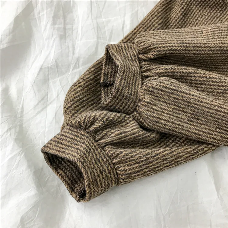 Повседневная винтажная блузка Mooirue, женский полосатый утепленный кардиган с рукавами-фонариками, уличная одежда в стиле Харадзюку, топы, женская рубашка в Корейском стиле