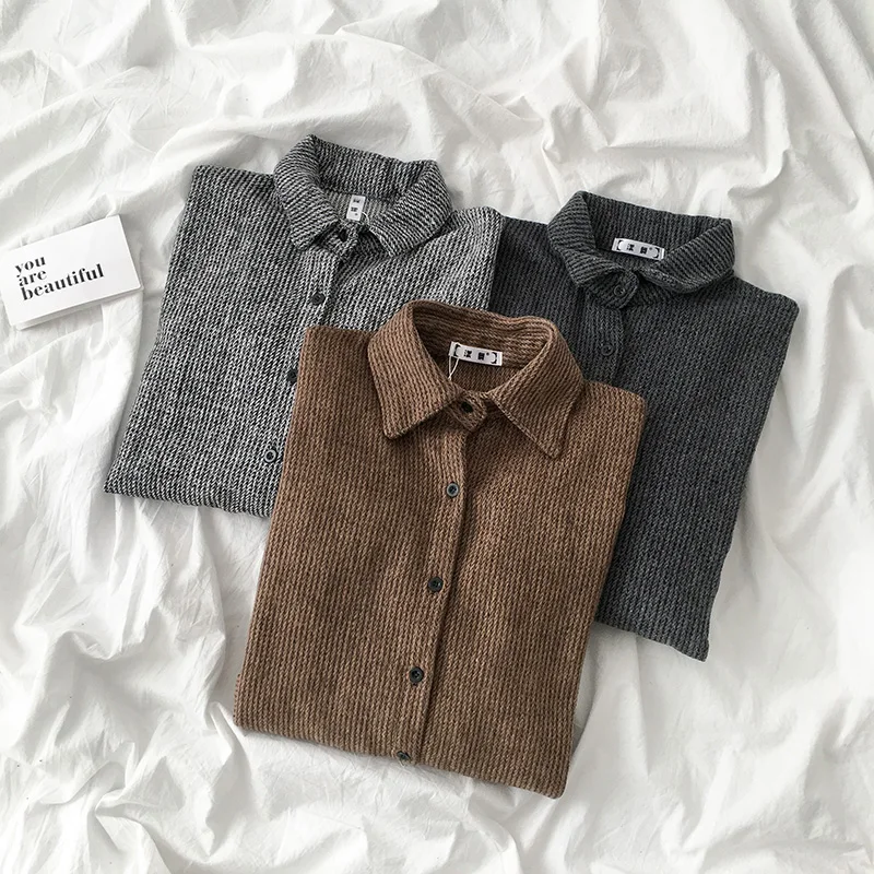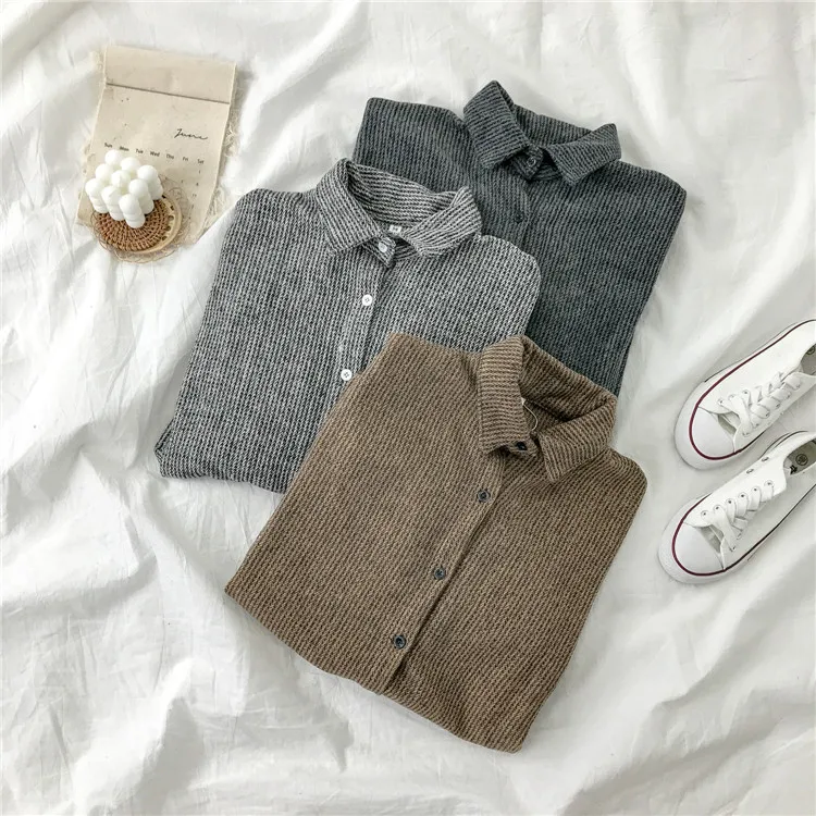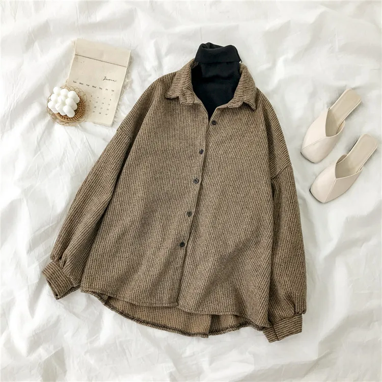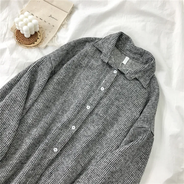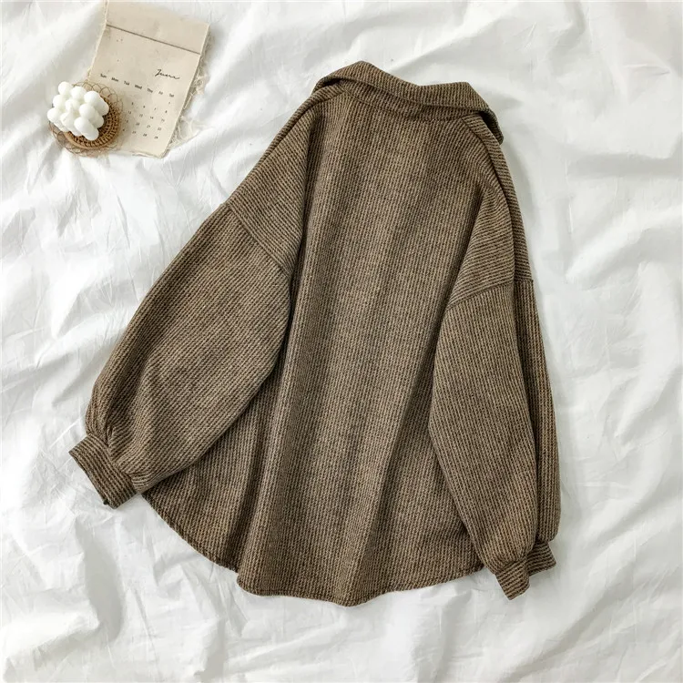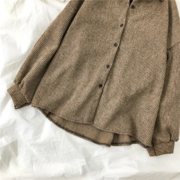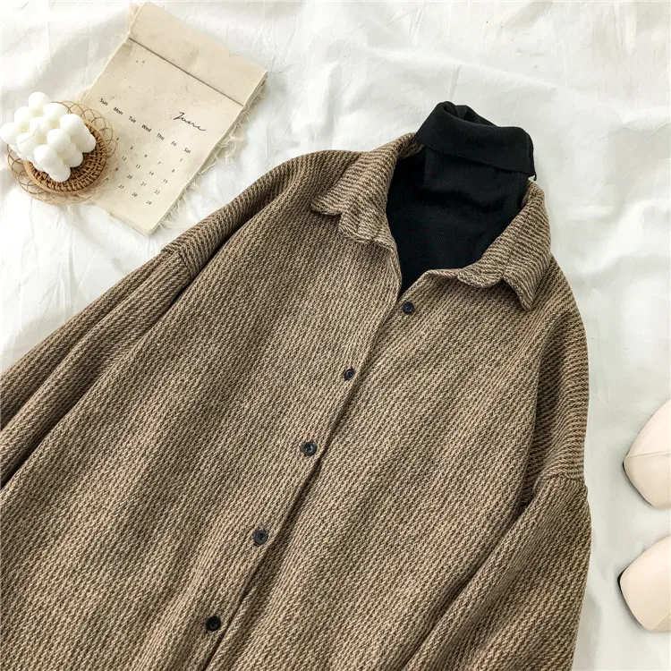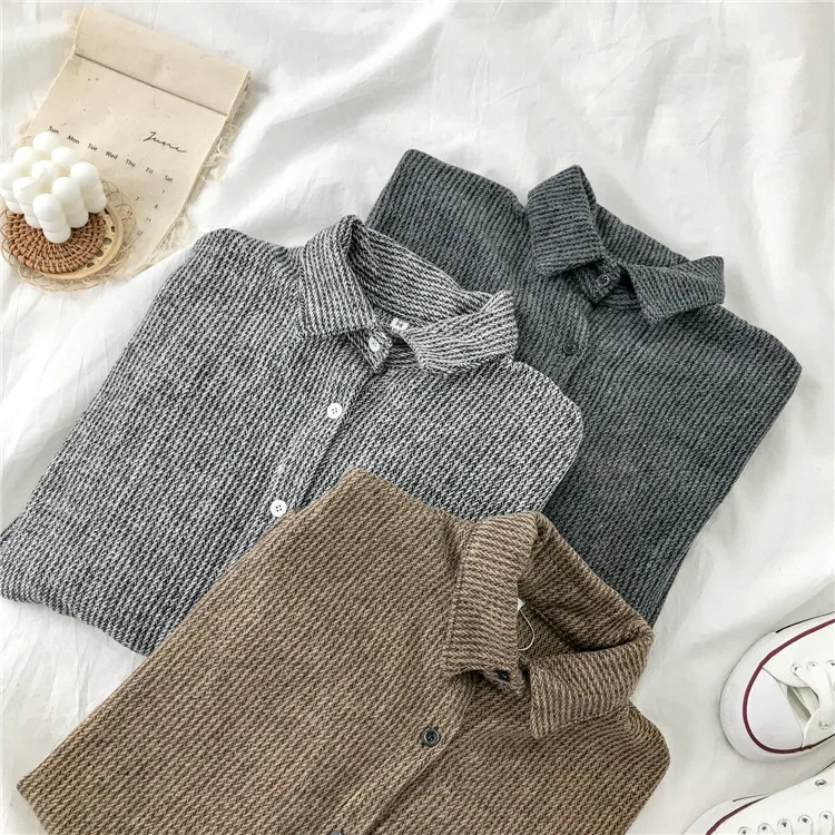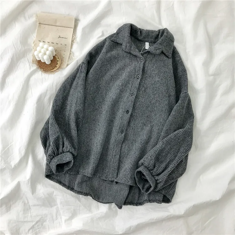 Повседневная винтажная блузка Mooirue, женский полосатый утепленный кардиган с рукавами-фонариками, уличная одежда в стиле Харадзюку, топы, женская рубашка в Корейском стиле