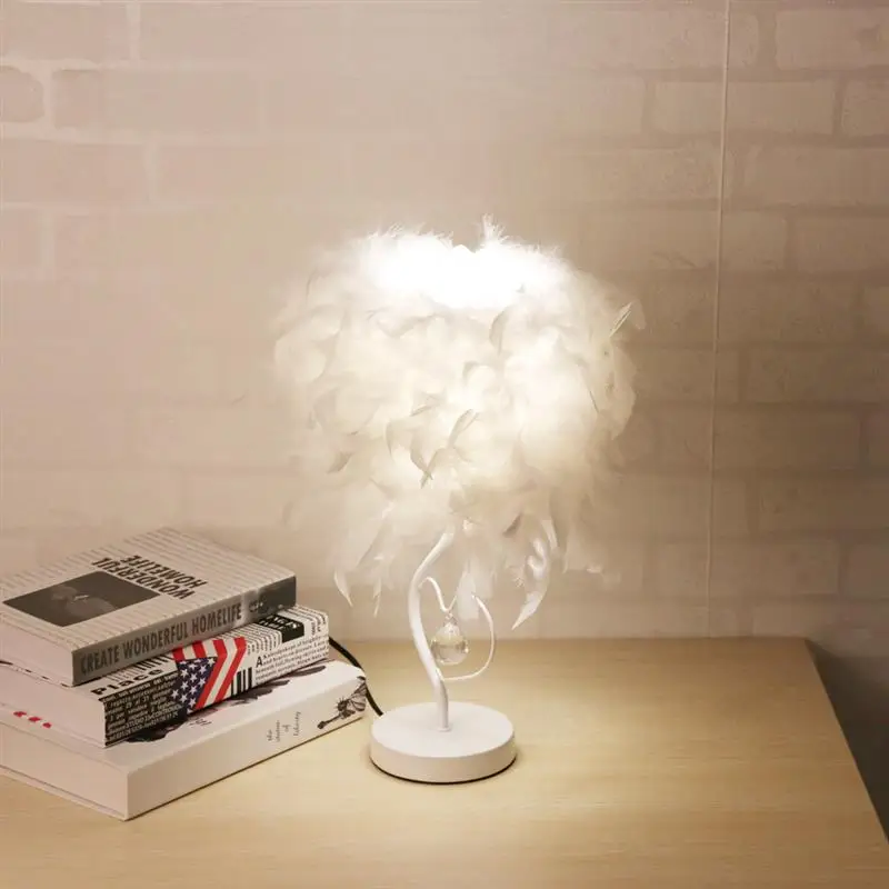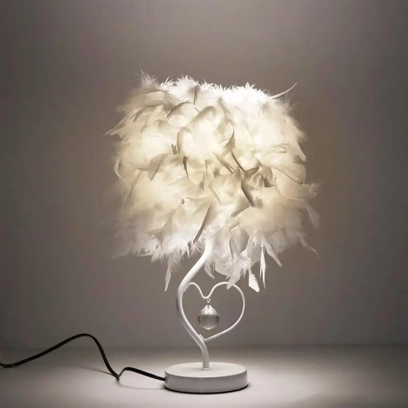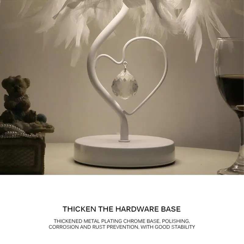 Декор для дома, лампа для гостиной, спальни, украшение в форме сердца, перо, Хрустальная настольная лампа, лампа для чтения комнаты, художественная декоративная лампа