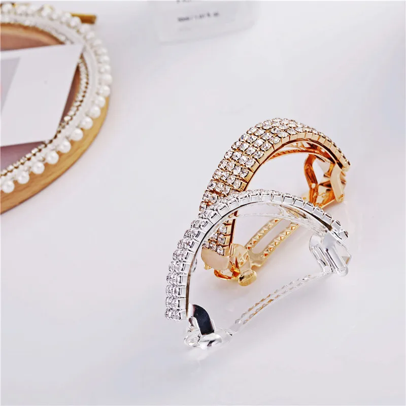 Заколка для волос, из металлического сплава, золотого и серебряного цвета, с блестящими кристаллами, прочная, пружинная, Женский хвостик, аксессуары для волос
