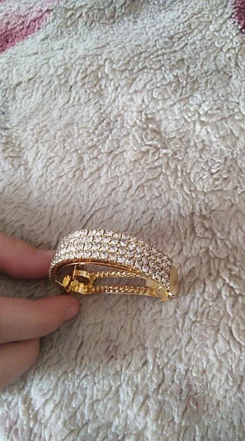 Заколка красивая, металлическая, стразы блестят, крепление хорошее. Только хвост у меня жидкий, с головы заколка спадает, великовата. Под плотную резинку пойдёт. Доставка очень быстрая, спасибо!