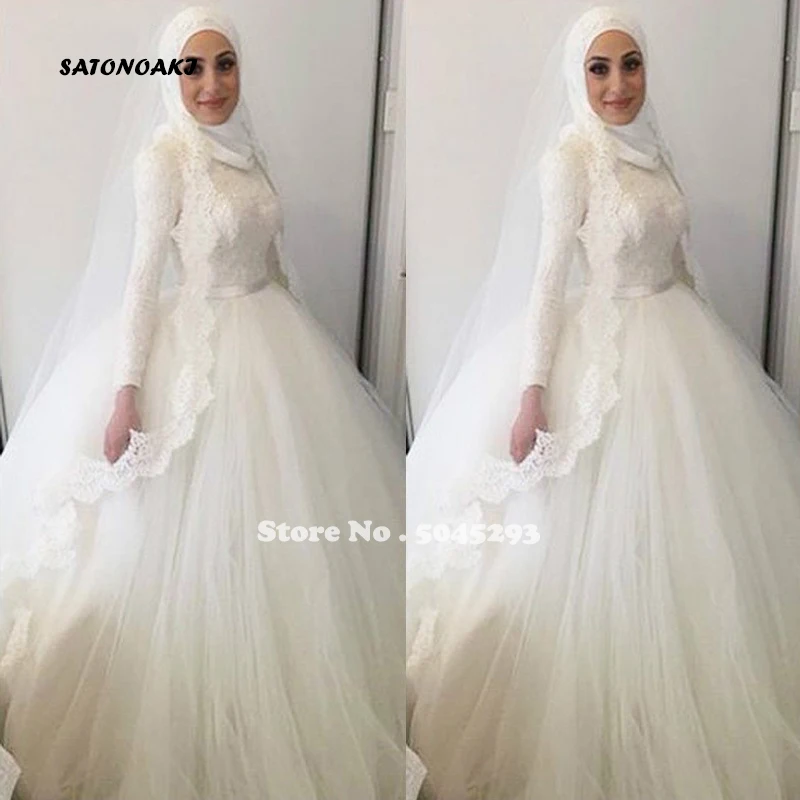 Женское свадебное платье It's yiiya, Белое Бальное платье из тюля с высоким воротником и длинными рукавами в мусульманском стиле на лето 2021