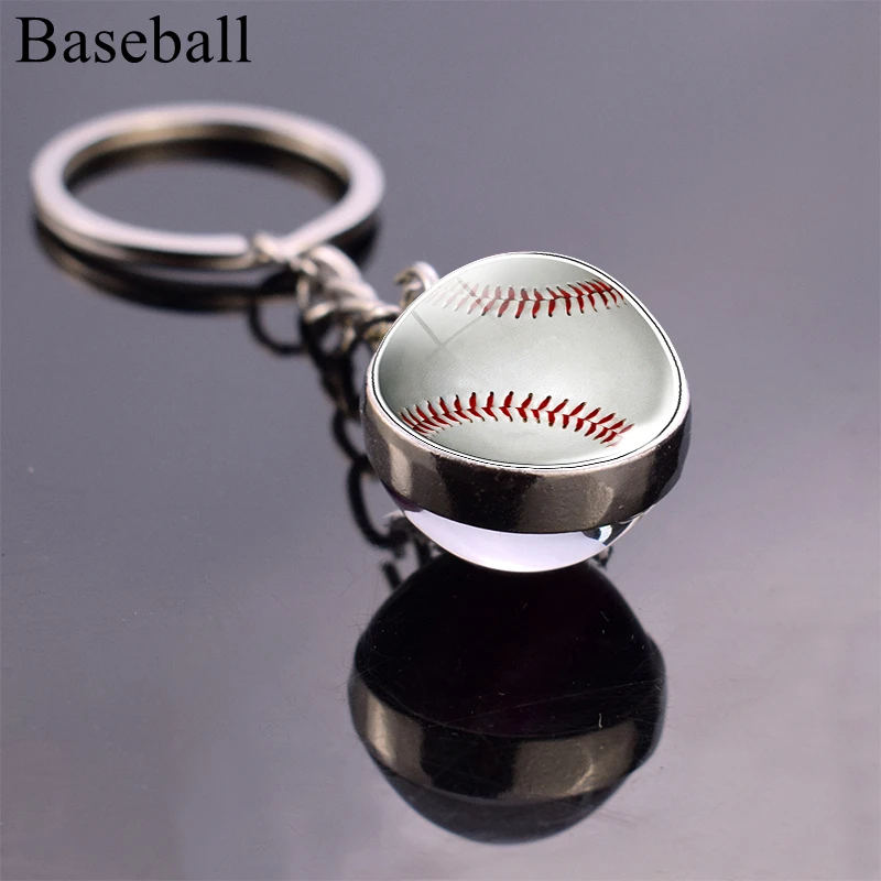 Брелок для ключей со стеклянным шаром, брелок для ключей теннис, футбольный, бейсбольный, волейбольный, футбольный, баскетбольный брелок, модные украшения