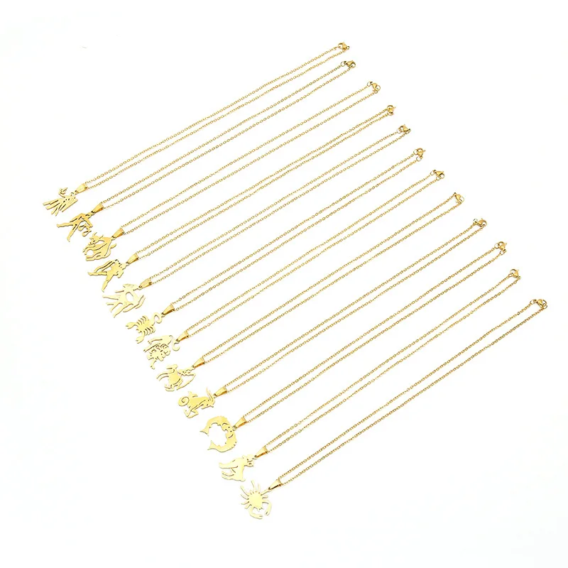 Женские Элегантные звездных Знак зодиака 12 созвездий Ожерелья Подвески Кулоны золотая цепочка-чокер, колье для женщин, ювелирные изделия, оптовая продажа