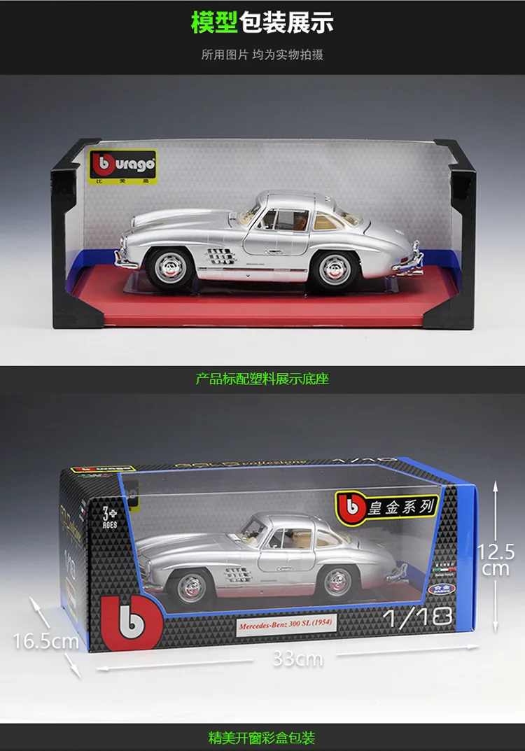 Модель спортивного автомобиля Mercedes-Benz 300SL Bburago, масштаб 1:18, 1954