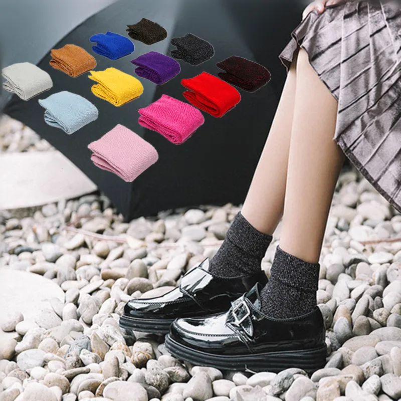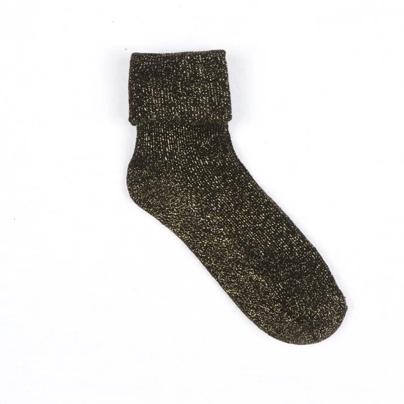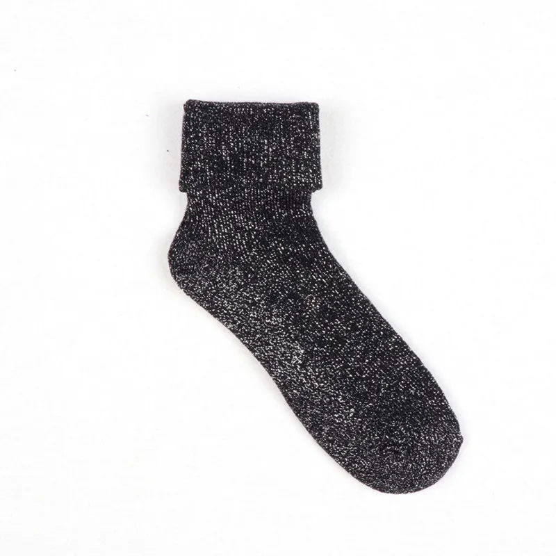 Носки женские, хлопковые, однотонные, блестящие, с металлическими линиями