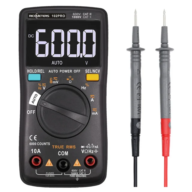 Цифровой мультиметр RM102PRO, 6000 отсчетов, автоматическая светильник ка, Тестер ACDC вольтметр-транзистор, частота диодов, температура