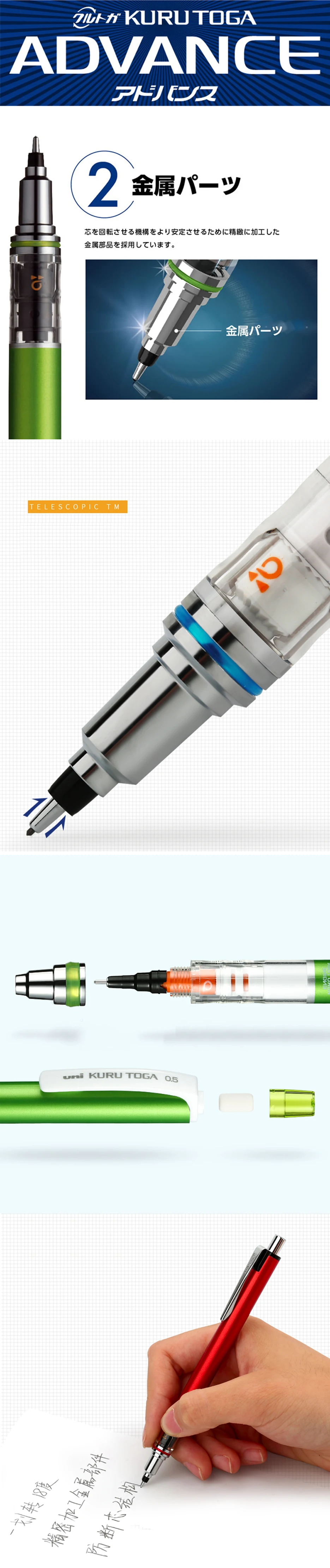 Японский автоматический вращающийся механический карандаш Kuru Toga ADVANCE, 1 шт., 0,30,5 мм, механический карандаш с низким центром тяжести