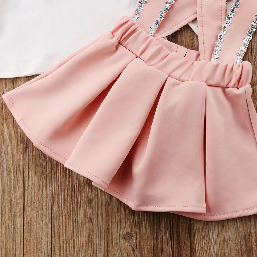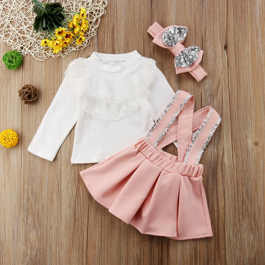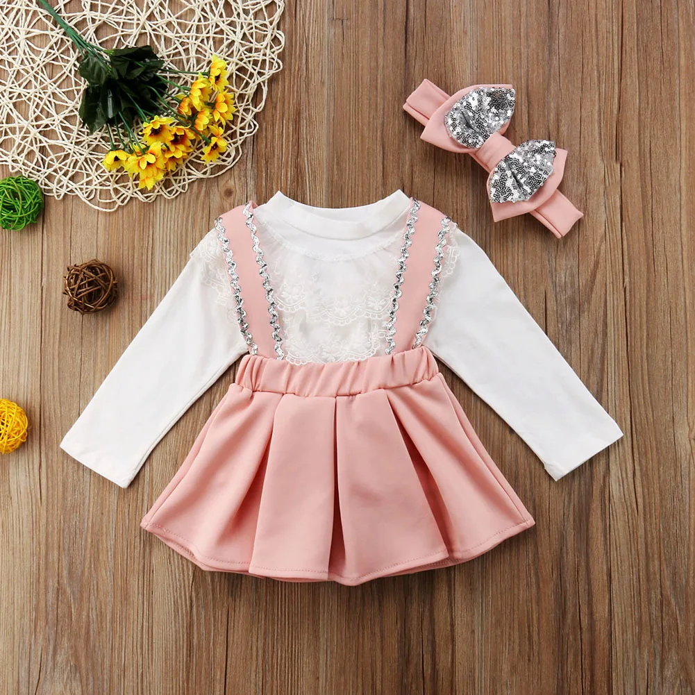 От 1 до 6 лет комплект одежды для маленьких девочек, футболка с длинными рукавами и кружевными оборками, Топы + юбка-пачка на бретелях с бантом, детские костюмы принцессы