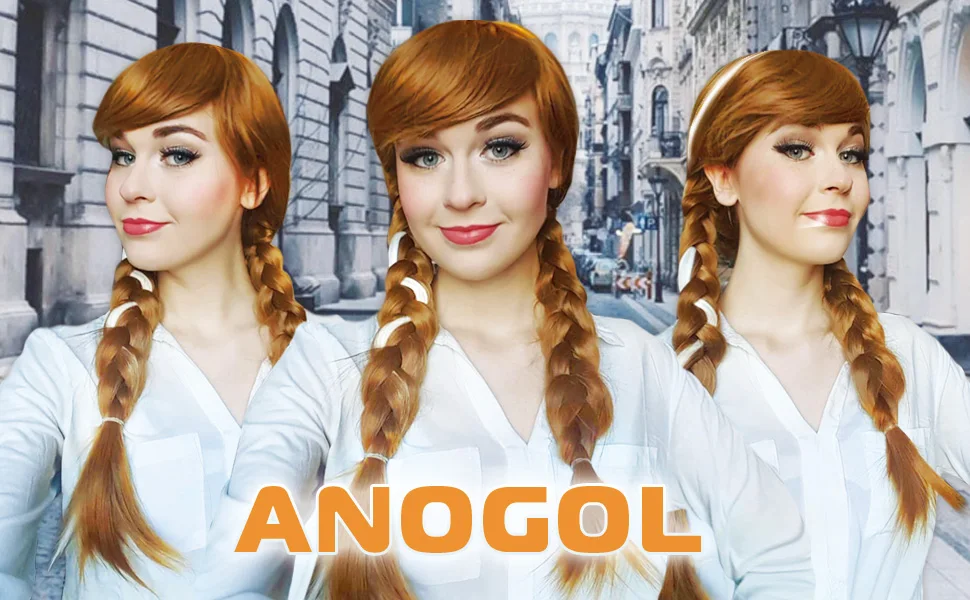 Парик Anogol, длинный оранжевый парик Мериды из высокотемпературног...